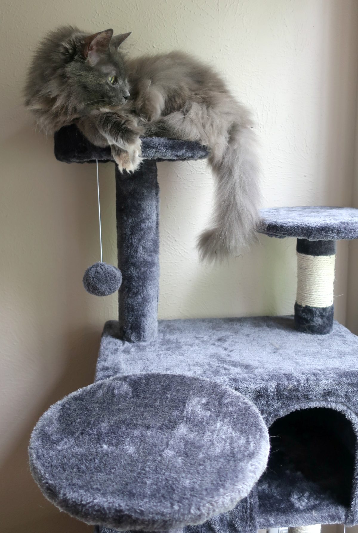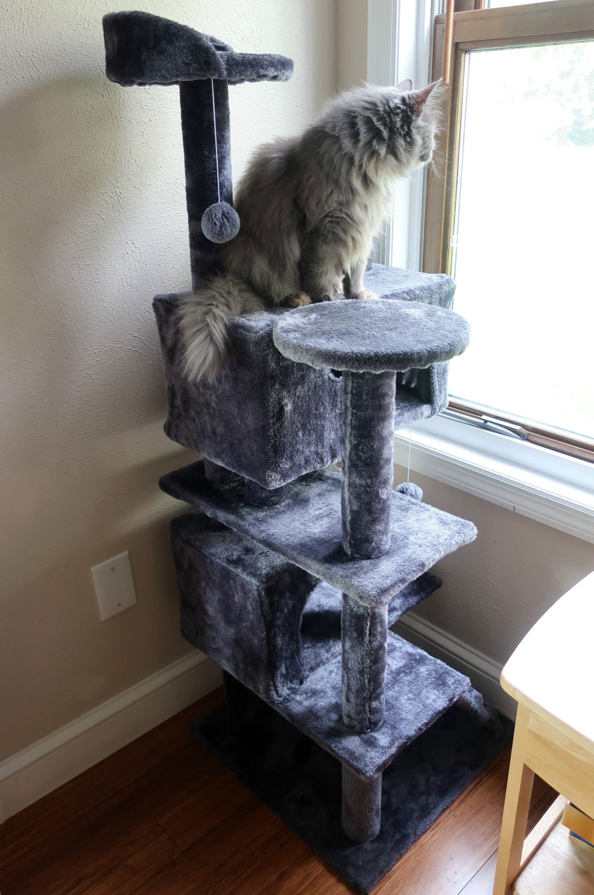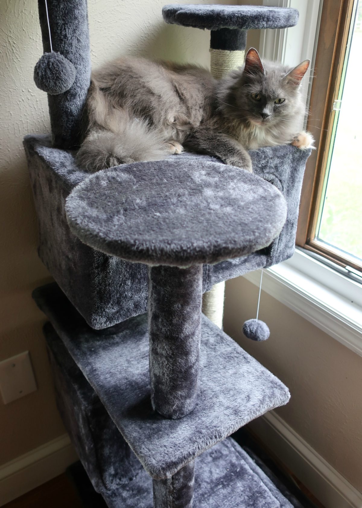 We have two cats that we adopted last year from a rescue group. They both love to lounge around the house in comfy places and look out the windows. We have and old cat tree that the cats fought over, so we decided the best thing to do was get a second cat tree.