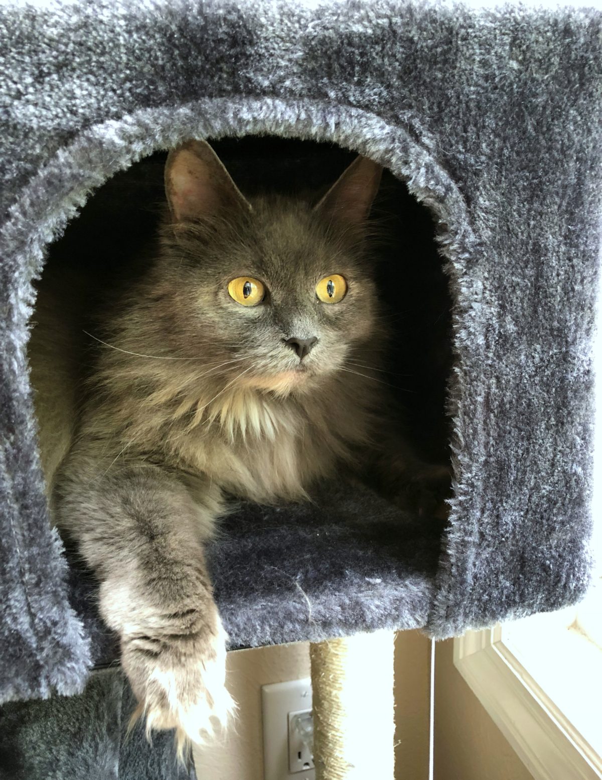 Our cat Peggy can’t stay away from the cat tree – and she also has not been good about sharing with her sister Jennie, which is why you don’t see our other cat hanging out on it!