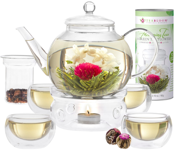 I would love to order a glass tea pot with more blooming teas for myself, but it would also make a really great gift.