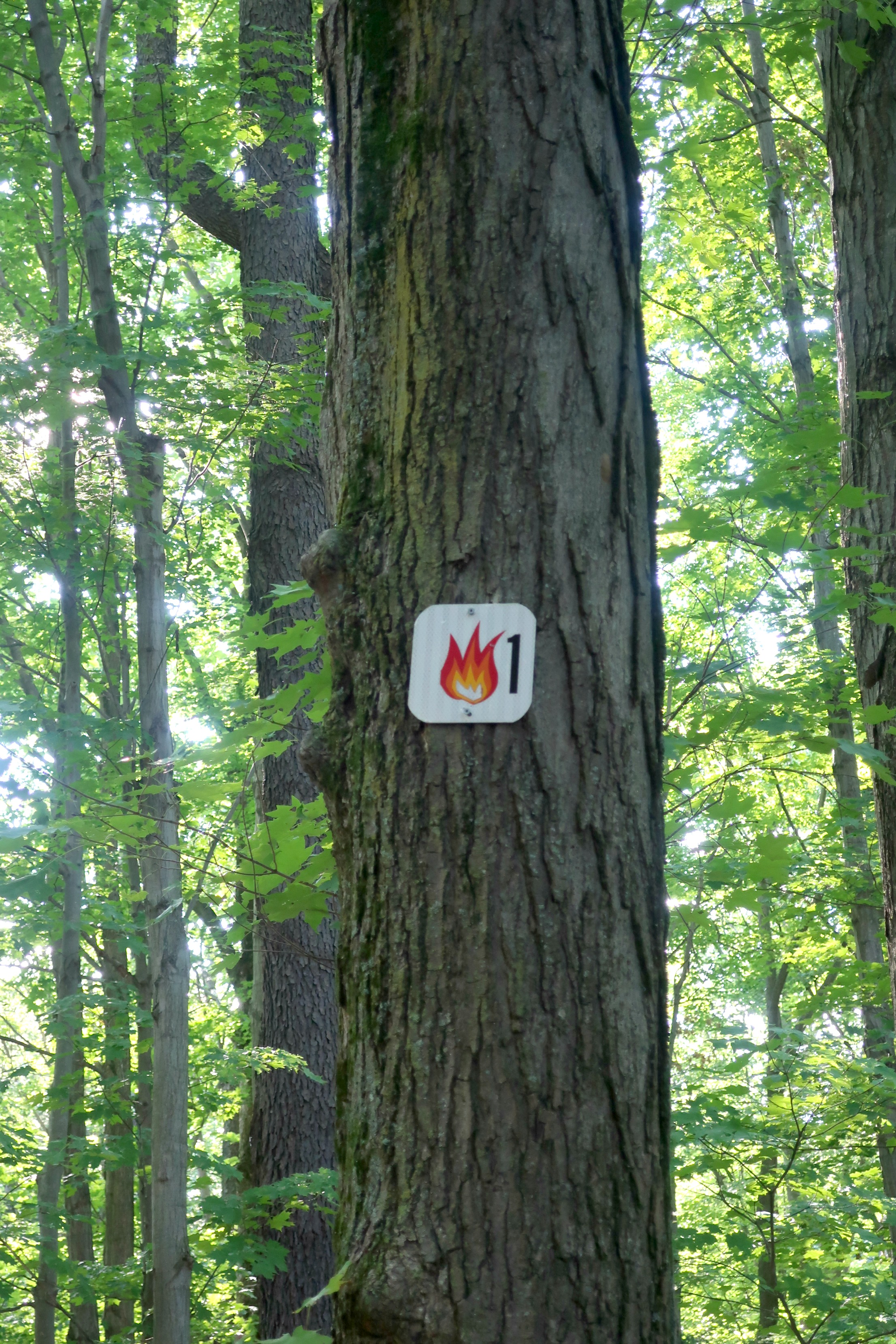 The trail is very clearly labeled with numbered “flames” on the trees. I believe it went from #1-#25, and the trail isn’t long (I believe about .5-.6 of a mile each way). Even when we head back out, the numbers count down for you.