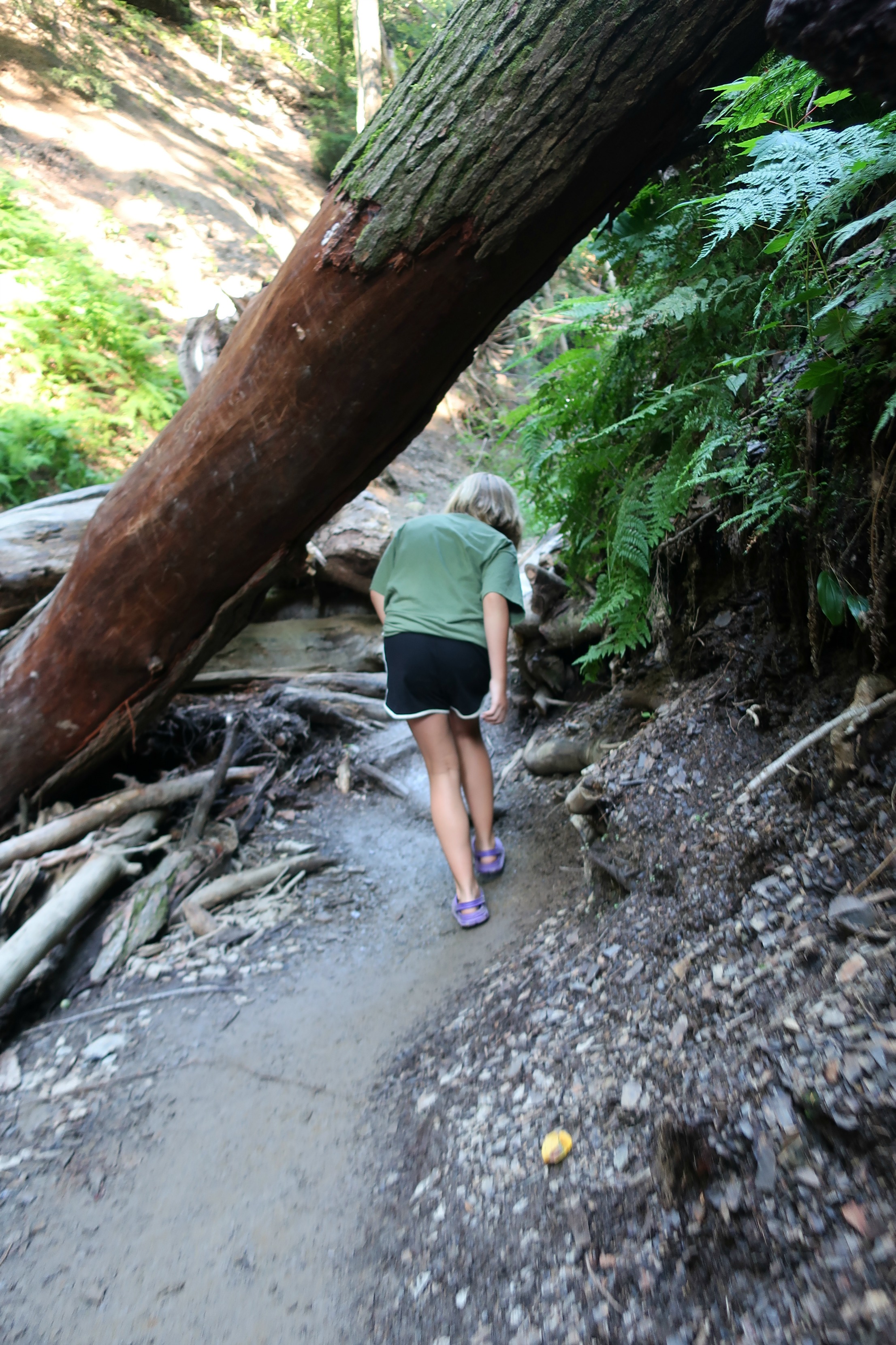 The trail is fairly easy, and my 8 and 11 year old had no problem hiking it. We saw other little kids and some older folks as well. While there are steep portions on the trail and some slippery spots, it seems easy enough to navigate if you take your time.