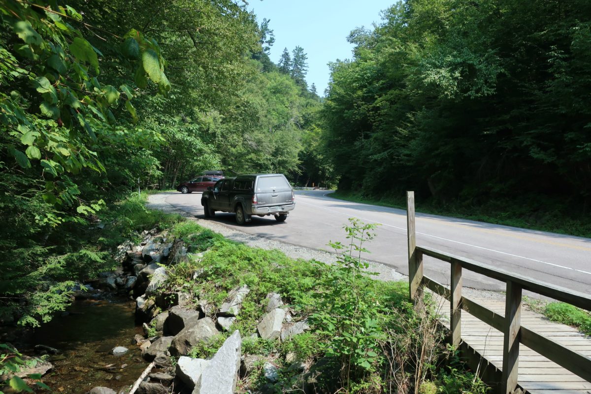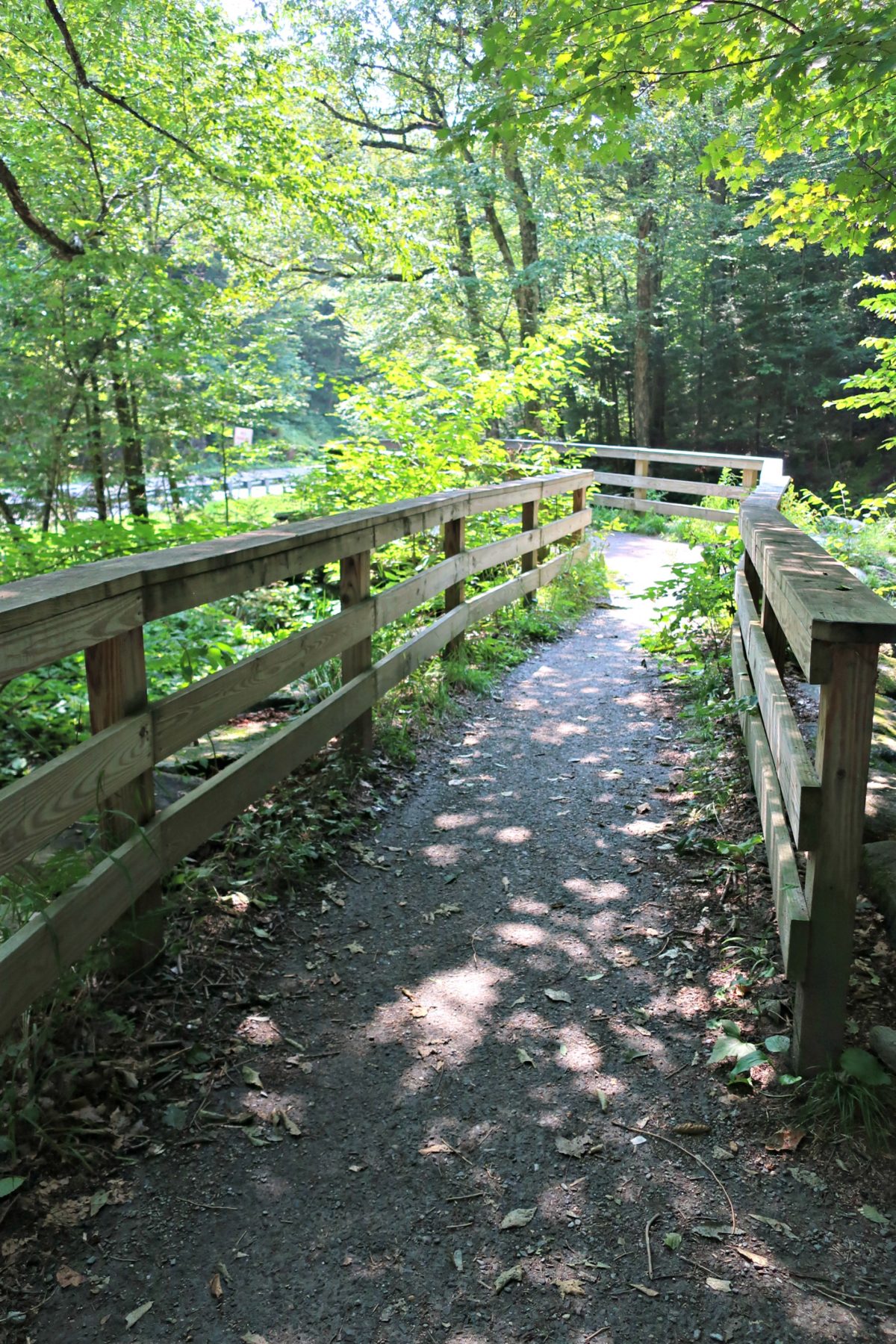 From the parking area there is a boardwalk going to both Little Moss Glen Falls (to the right), and Moss Glen Falls (to the left). You can just about see both from the parking area, and the walk is very minimal.