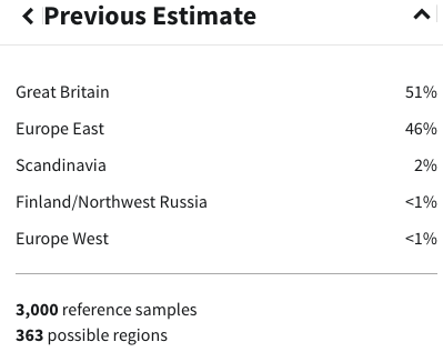 Previously, I was 51% from Great Britain and 46% Eastern European, so it is a big change.