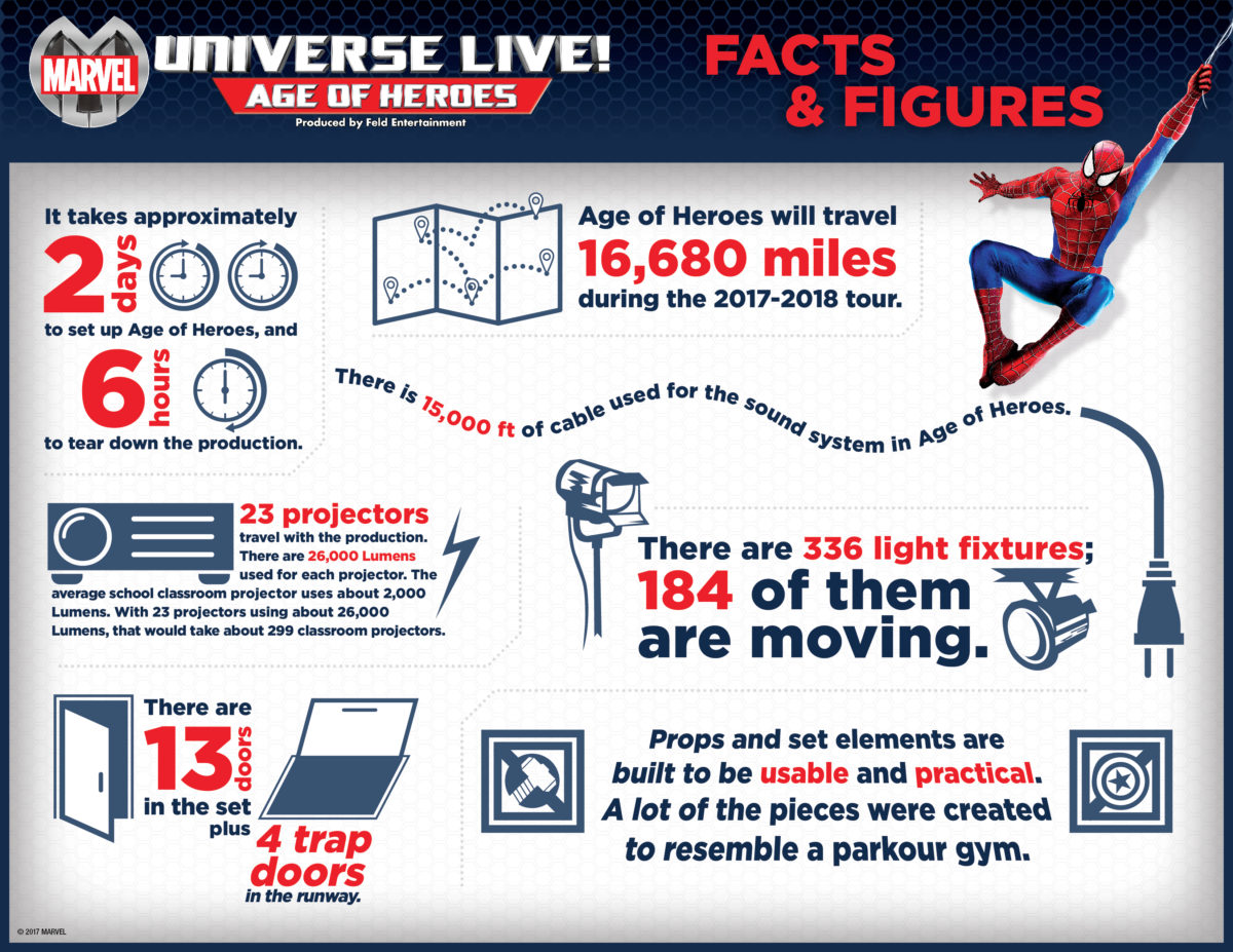 Brought to you by Feld Entertainment, check out these cool facts and figures about Marvel Universe Live. So much goes into putting together such an amazing show!