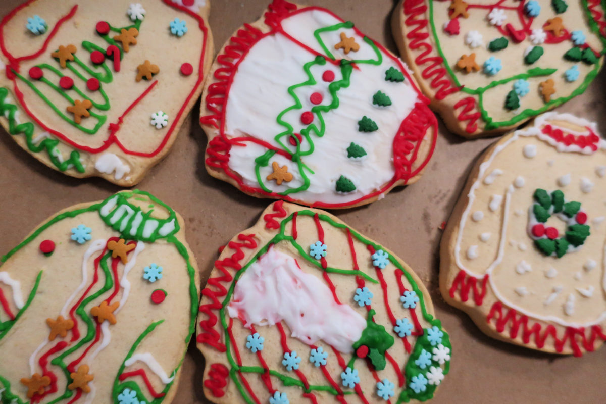 For the ugly sweaters, there were 12 cookies to decorate. My daughter started with the icing, then used frosting and finished with different shapes of sprinkles.