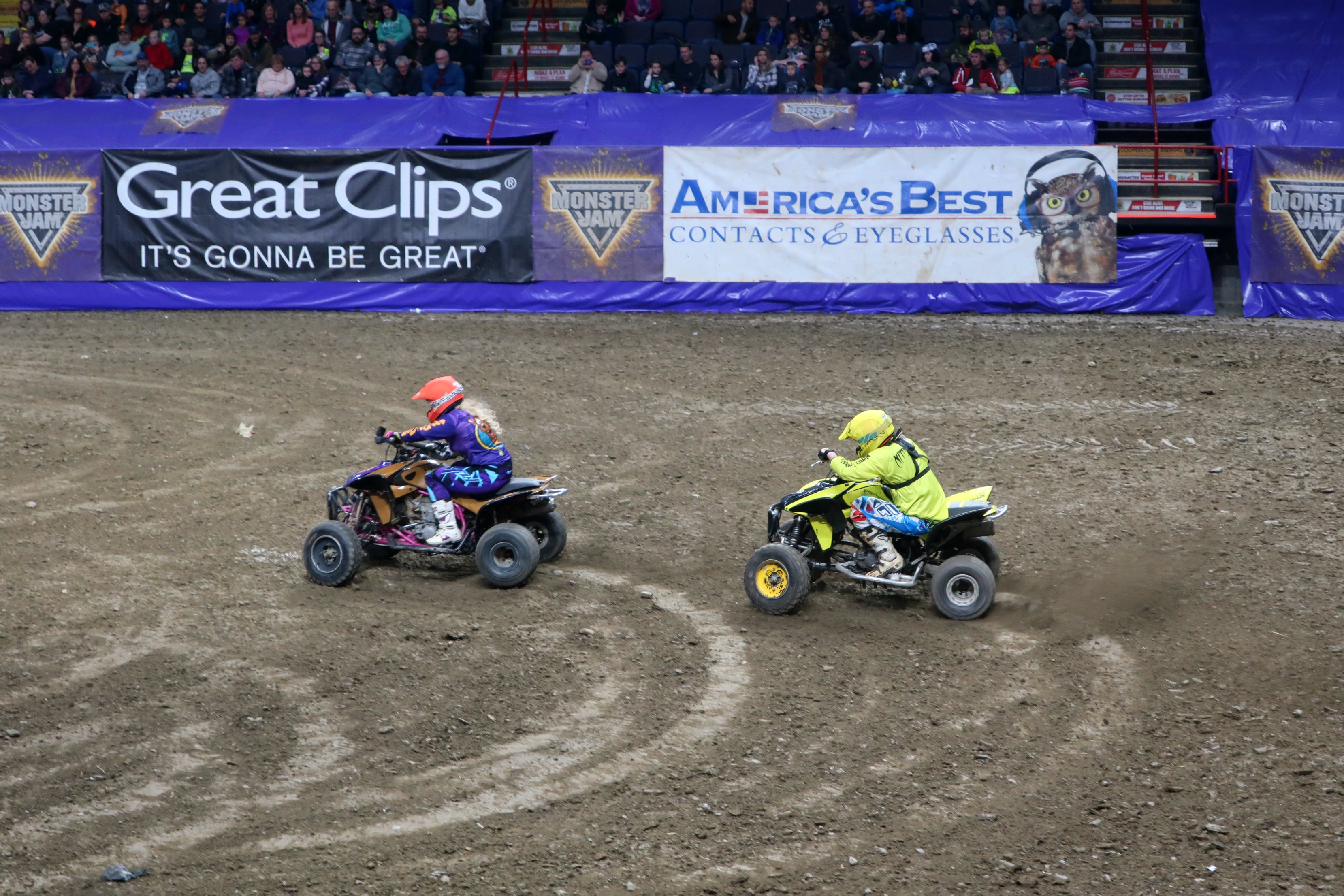 The Monster Jam drivers also drive ATVs, and it is exciting to see them race.