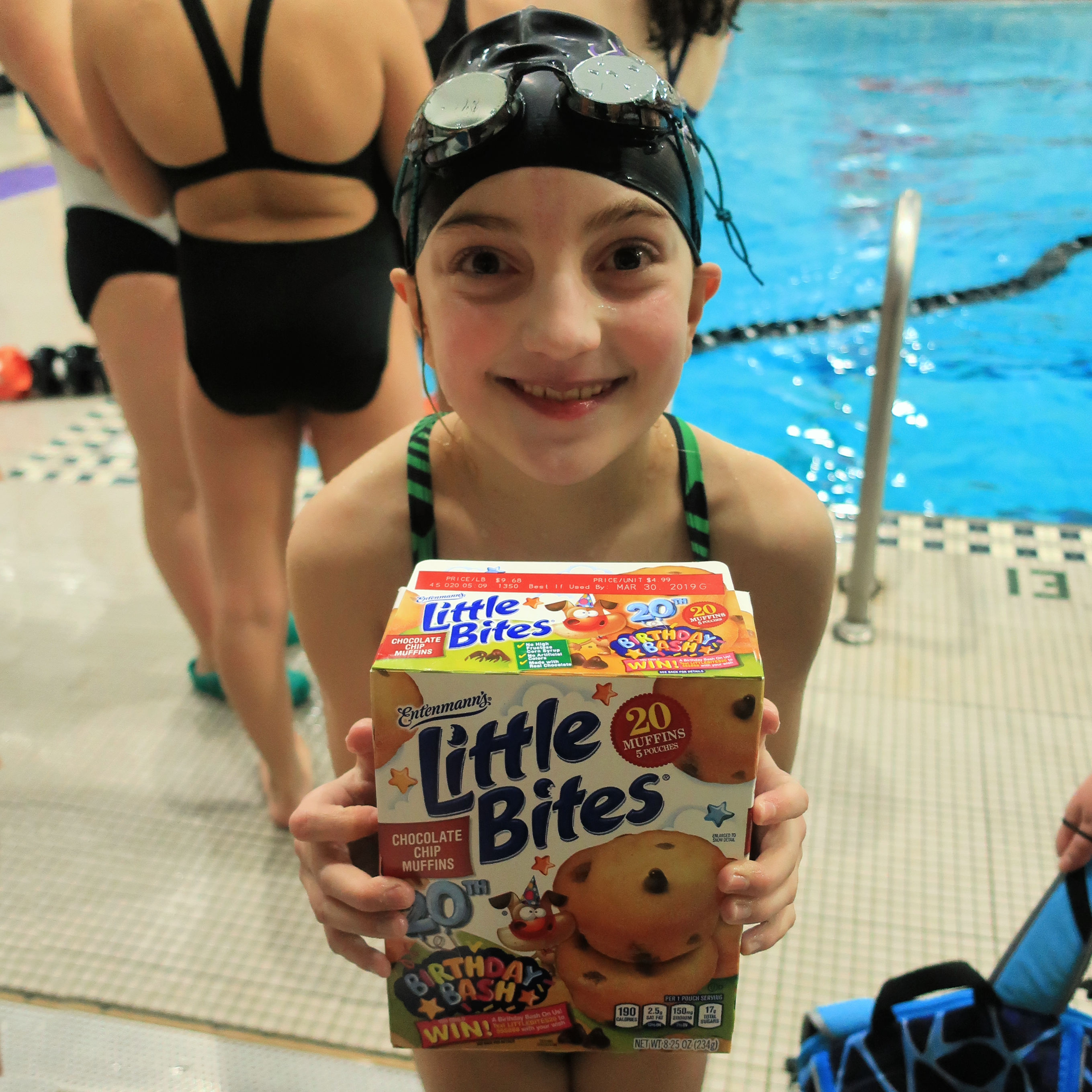 My kids love having Entenmann’s Little Bites® muffins before their warmups, after, or between races when they get hungry. Getting up early and doing so much swimming makes for hungry kids! Plus it never hurts to send some food in for the coaches, too.