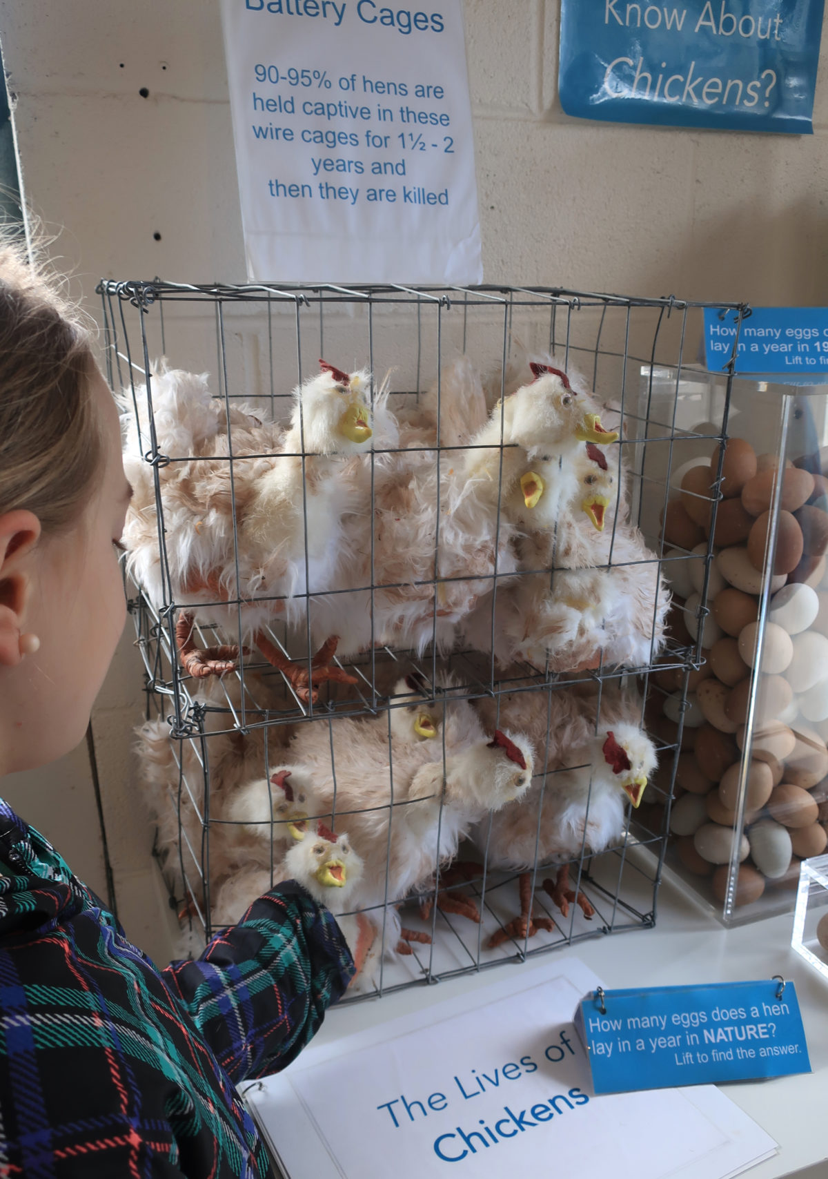 I especially liked how they used plush chicken toys inside a battery cage as an educational tool – oftentimes a visual representation can be so much more powerful than just a description.