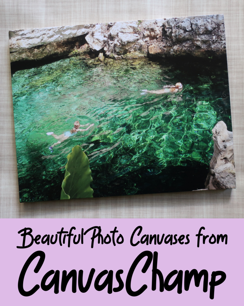 That is a lovely picture of your daughters in the cenote. CanvasChamp certainly did a good job capturing the colors.