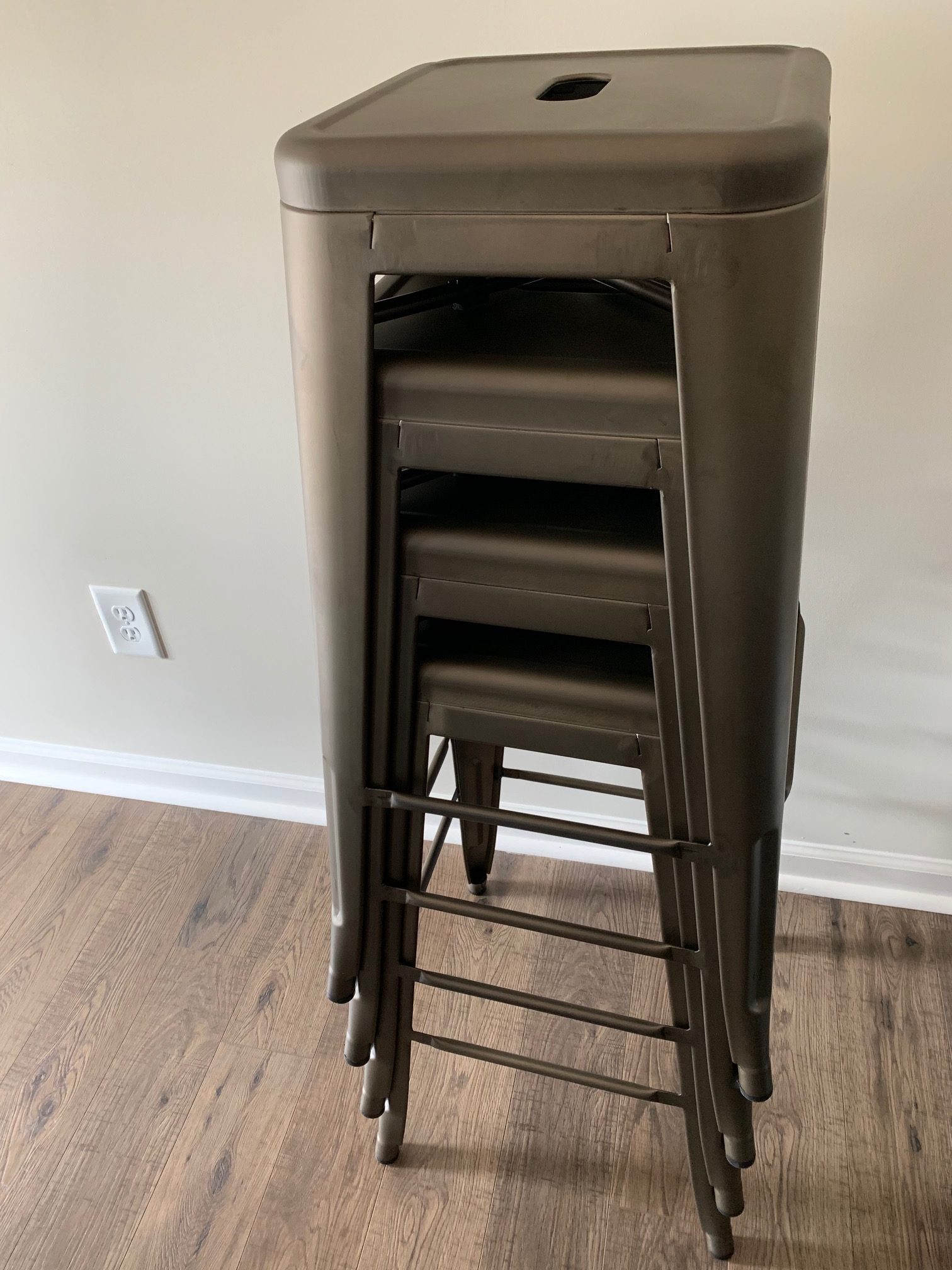 A final benefit is the stacking feature of these stools, I could easily pile up all 4 and store them if needed. The three sets I previously used were unable to be stacked, which made space-efficient storage difficult. You could easily keep these in a hall closet or basement for backup seating or general storage.