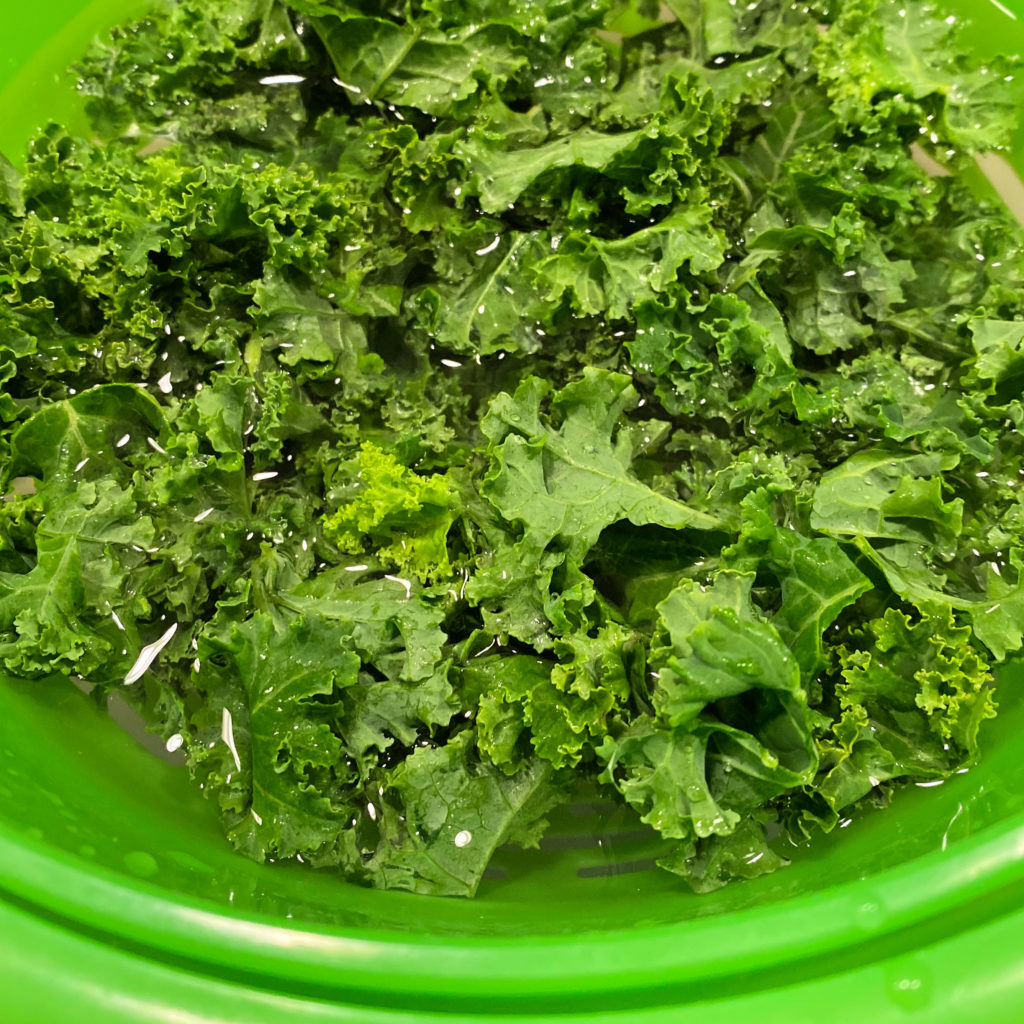 - 1/2 bunch kale (a couple of handfuls) de-stemmed and torn or chopped into bite sized pieces (although sometimes I use the entire whole bunch)