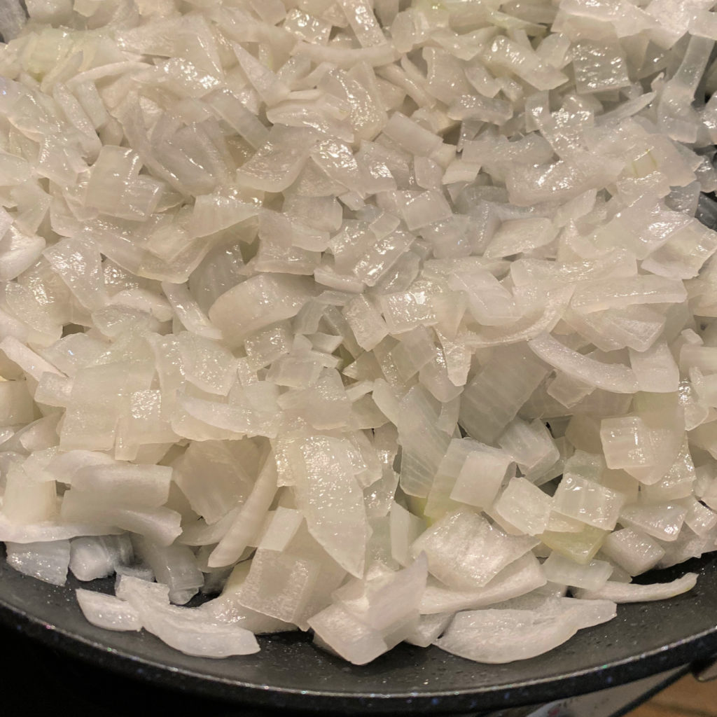 Saute your onions and sausages (separately), adding in the garlic to the onions as the onions are almost done (so the garlic doesn’t burn).