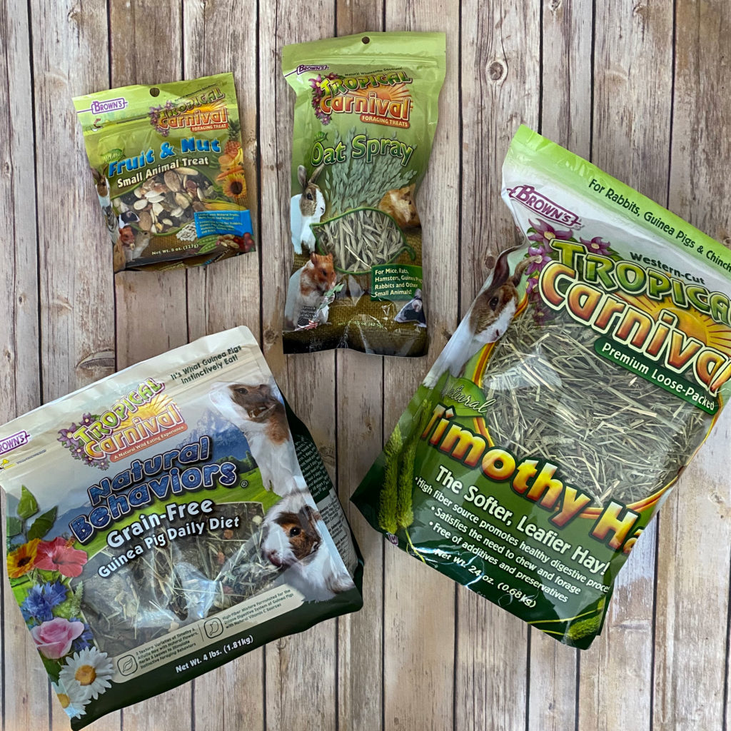 We have been using the Brown’s line of guinea pig foods for our guinea pigs Mochi and Nutmeg. They have a wide variety of dietary needs that makes it easy for us to provide what we need to the guinea pigs.