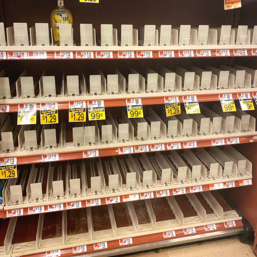 We did do some pre-emptive shopping, since we knew that store shelves were clearing out. By the time we made it to the stores, there was no soap, toilet paper, or bleach. And very limited other supplies, like butter or cheese.