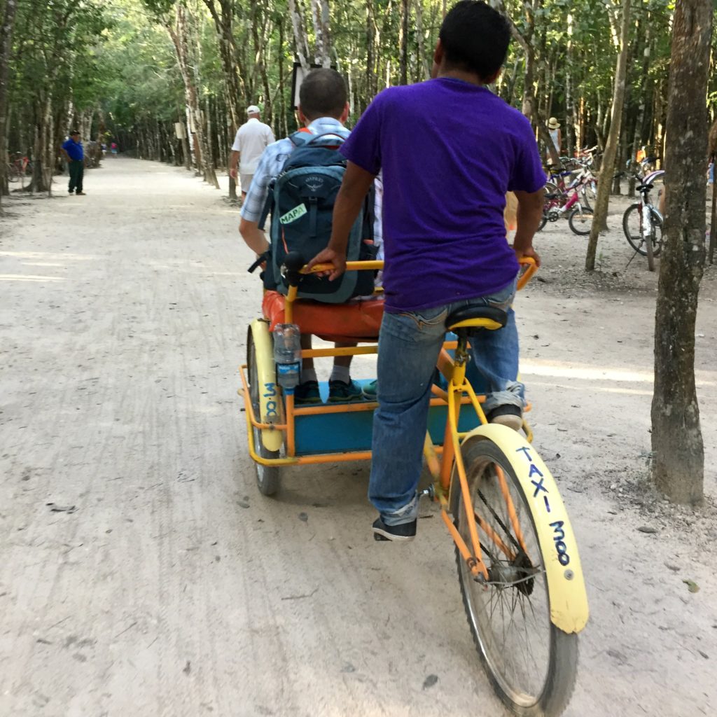 Apparently you choose to rent a tricycle at the archaeological zone of Coba (picture) in Mexico. They also offer bikes, but by choosing to hire someone you supported the local community, which is as well an essential part of eco-tourism.