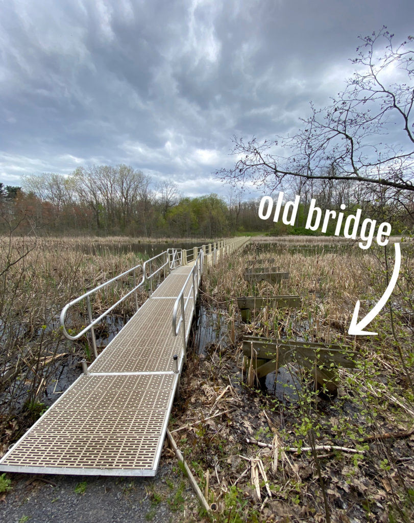 Many years ago, I remember bringing my daughter to Ann Lee Pond to check out the aquatic life and go for a walk. After checking out some geese and turtles, we made our way to the trails, only to find that the boardwalk over the water was in disrepair. I recently saw that a new bridge had been constructed, so we decided to check it out.