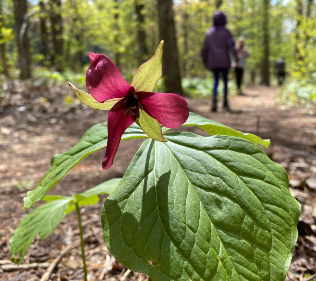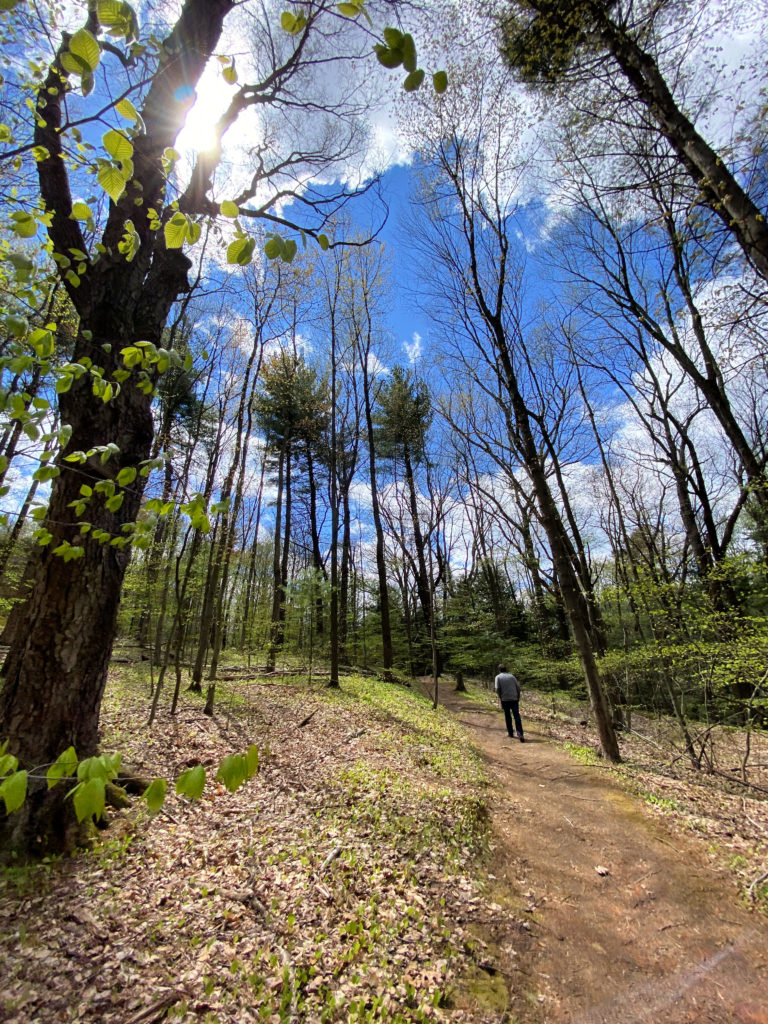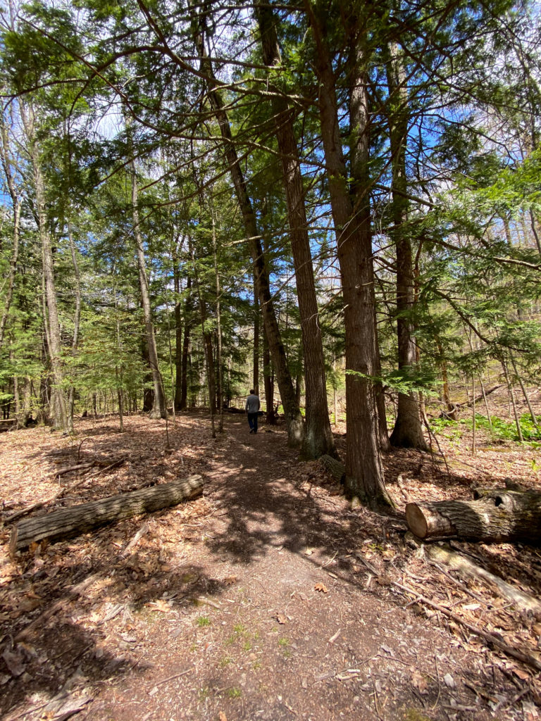 The trail is a very easy stroll through the woods, and the paths are wide (good for social distancing).
