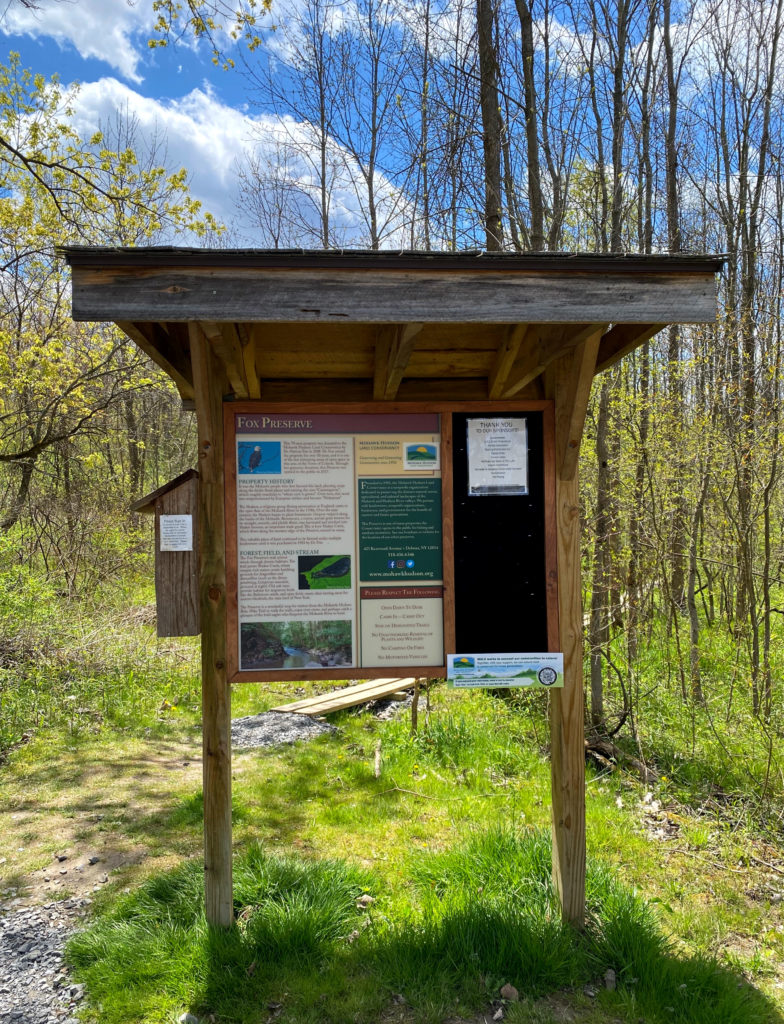 If you are looking for an easy, kid-friendly hike in the Capital Region, Fox Preserve is a short, peaceful stroll through the woods. We like to take our kids hiking, but for younger children, it is good to stick with short, easy strolls. The loop trail at Fox Preserve is less than a mile and is on easy terrain. The Mohawk Conservancy website describes this as “Just over one mile of trails through fields, forests, and along Shaker Creek”.