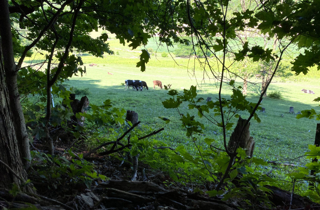 The trail starts on the green trail, which hugs the side of the preserve, with views of farmland and cows.