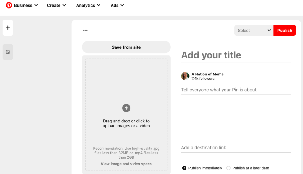 Be sure to selected an image to go with your link that you like. If the pinnable image doesn’t automatically populate from your post, you can upload one manually.