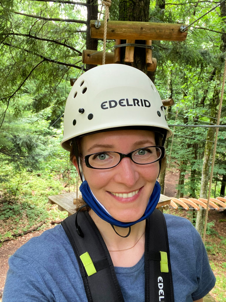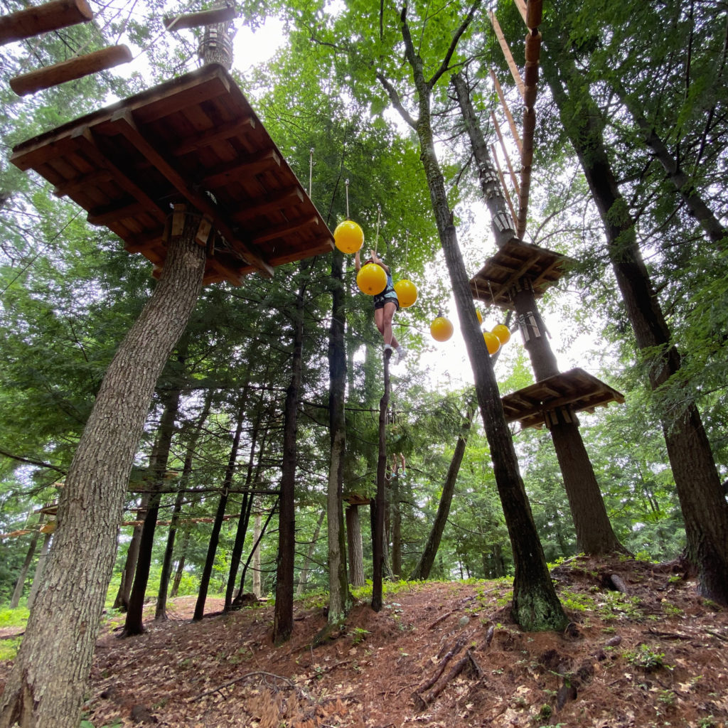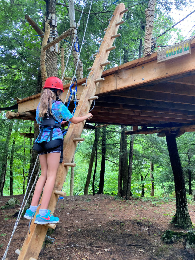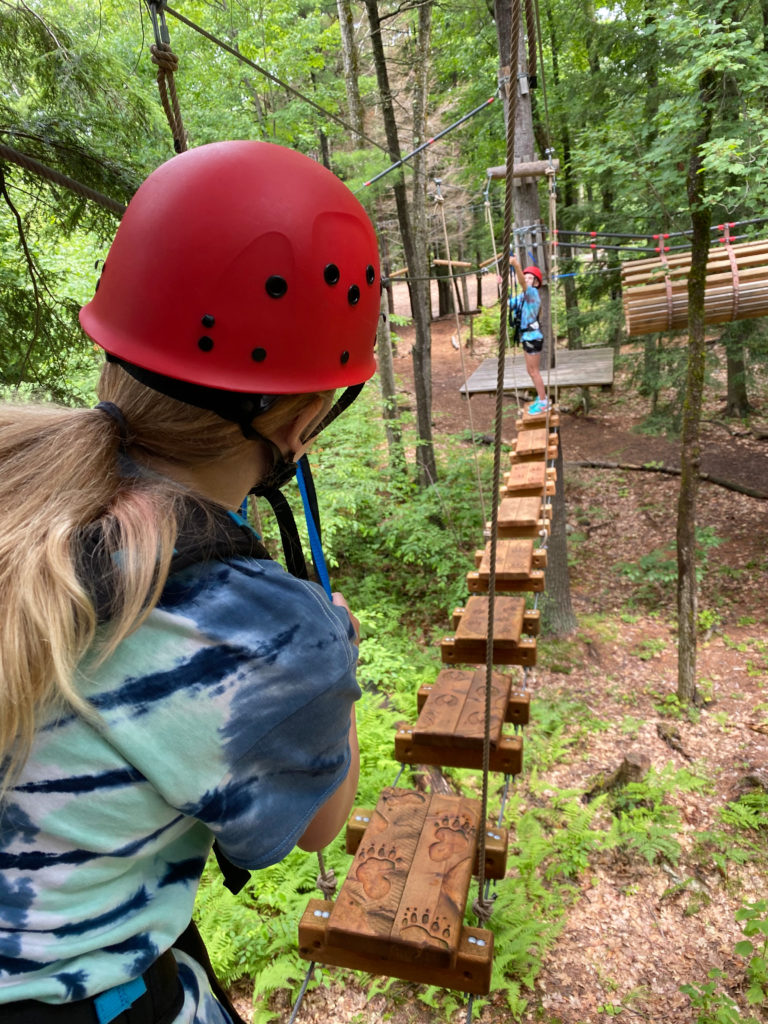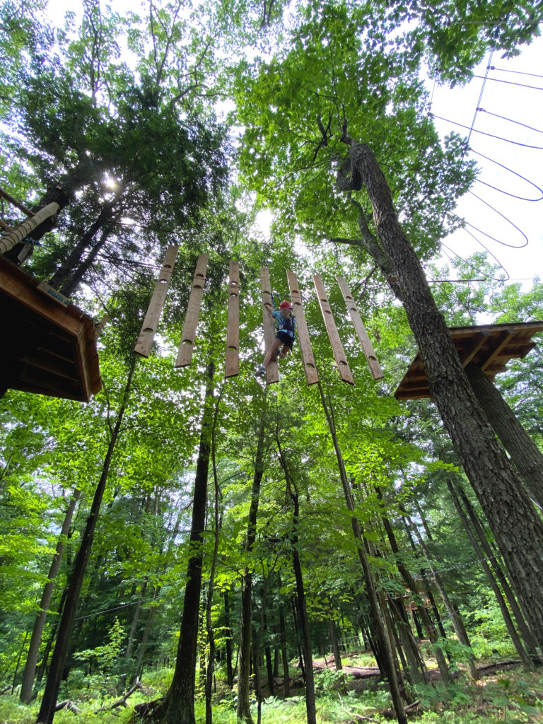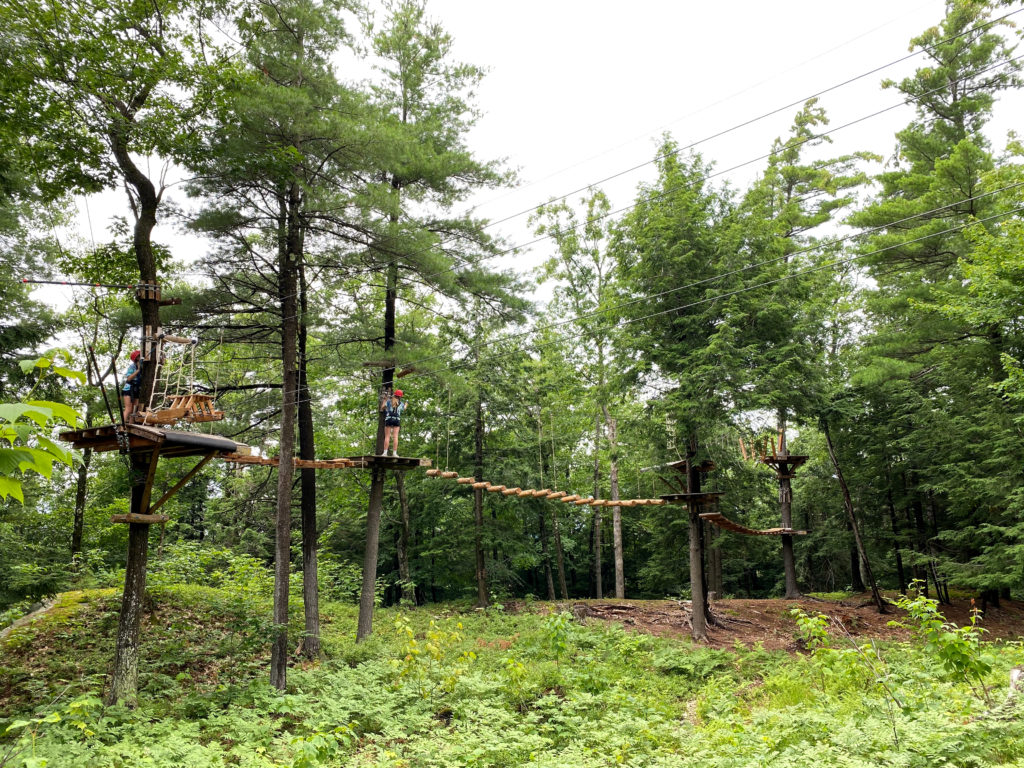 After lunch, we headed to the Aerial Treetop Adventure Park. It was a short walk through the woods, and you can’t miss the adventure course with a large tent where you get your gear.