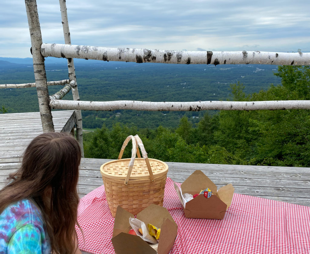At the top, there are several locations where you can picnic, from a wedding overlook to many picnic tables in different locations. The kids really liked the wedding platform, and we enjoyed a delicious lunch overlooking the amazing scenery below. West Mountain is offering some yoga events on the platform this summer, which sounds like a neat experience.