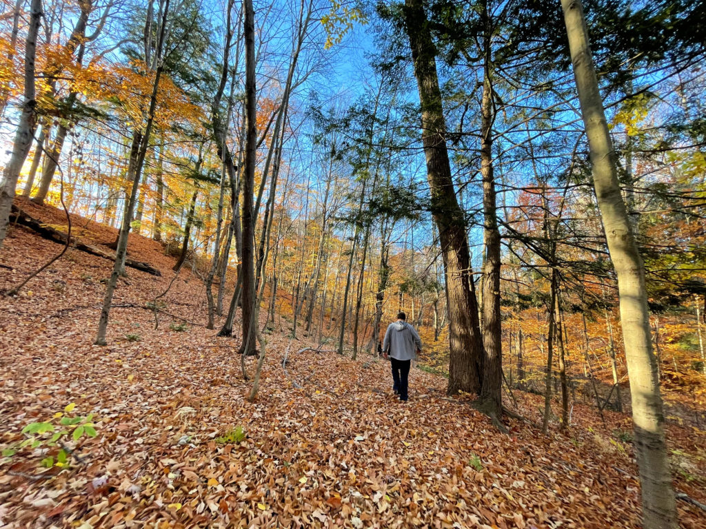 The trails were covered in leaves, but there were plenty of trail markers on the trees to guide us.