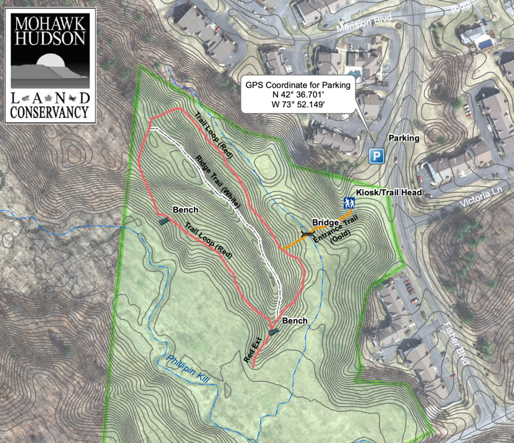 According to the Mohawk Hudson Land Conservancy, “Visitors to the Phillipin Kill are allowed to use the Mansions Apartment parking lot adjacent to the preserve.”