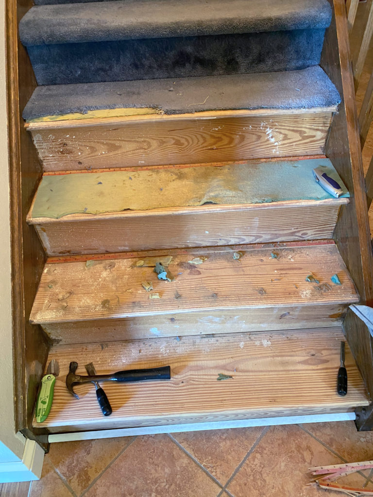 Your stairs look great! You did an amazing job. I hate pulling out all the little nails.