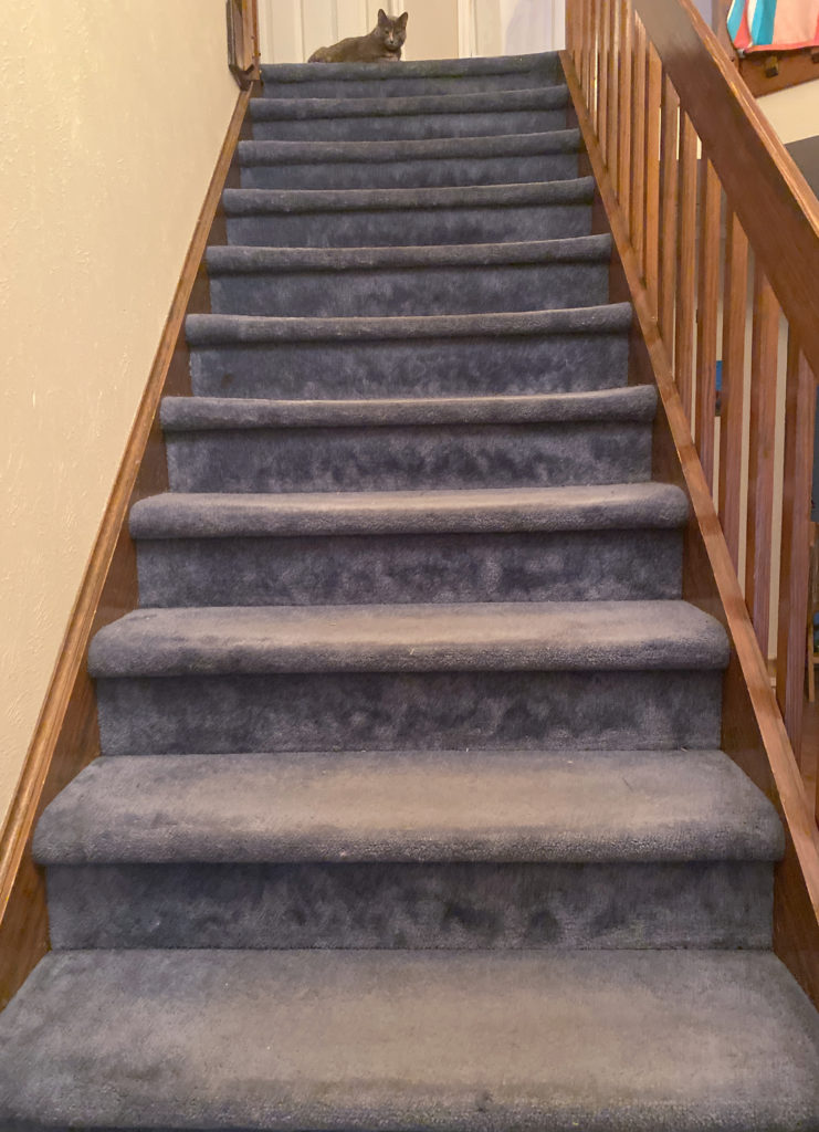 The first step to redoing the staircase was to remove the old carpeting.