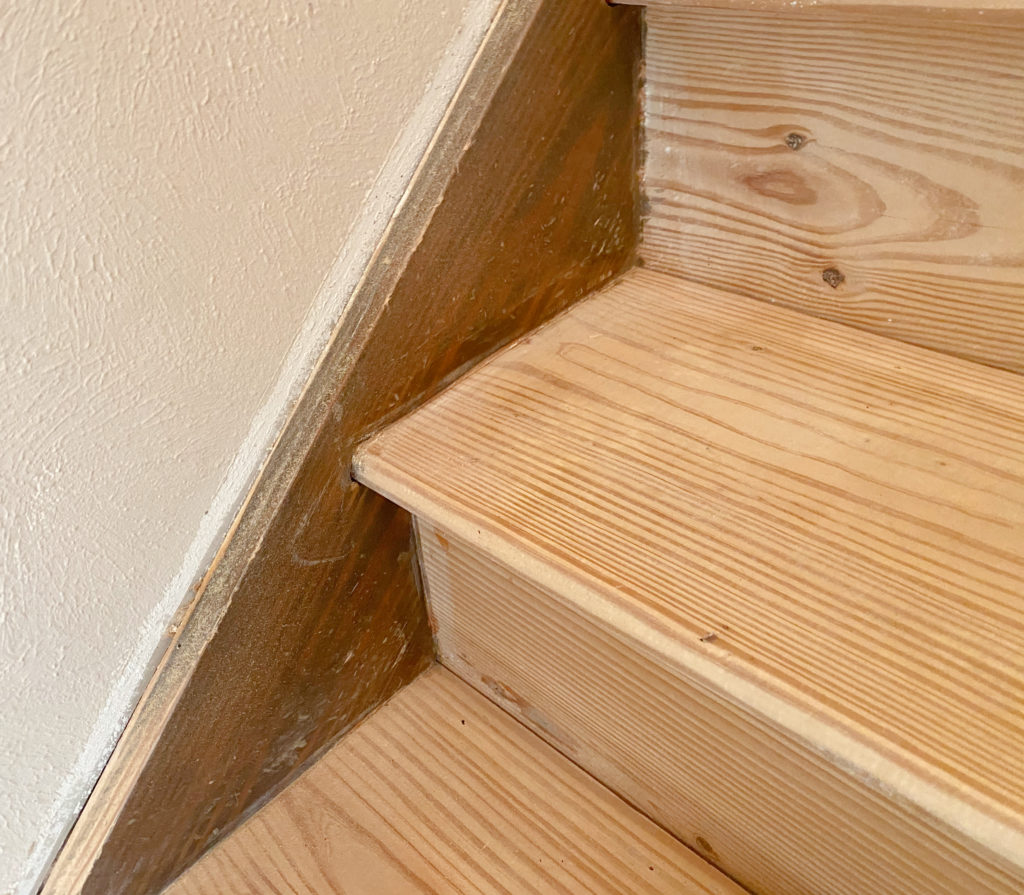 I did not sand everything perfectly. While I was originally going to refinish the stairs, the plan was always to repaint the stringers a nice white color.