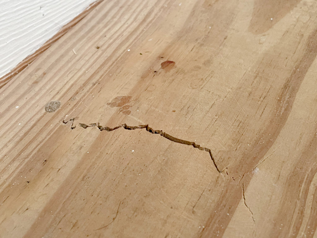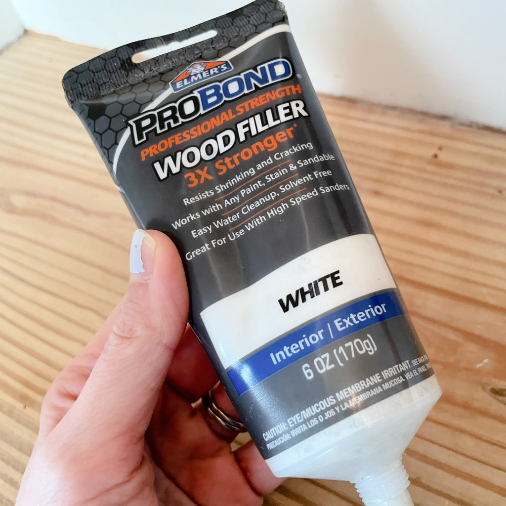The first step was to fill in all of the imperfections in the wood. I used a white wood filler that we had, since it did not matter if it matched with the wood color.