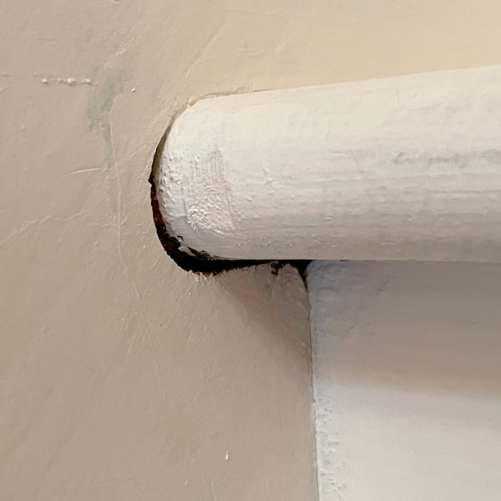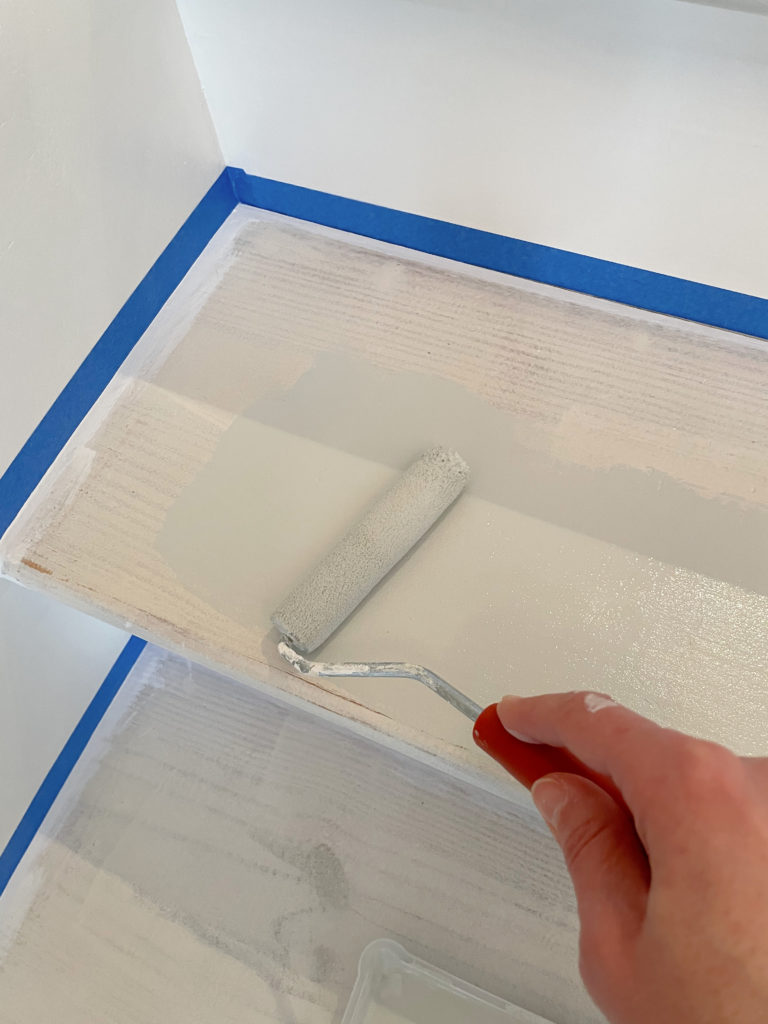 For this project, I would say using painter’s tape is a must. I do a fair amount of painting, and thought that I could cut in by hand and that I would have ample space with the roller. However, 1) it didn’t look great when I cut in by hand, and 2) I ended up running the roller close to the edge for good coverage (you can see the pearl gray paint on the painter’s tape). I was about at my limit with all the tediousness of this project, but it was worth putting down the painter’s tape even though it was a pain.
