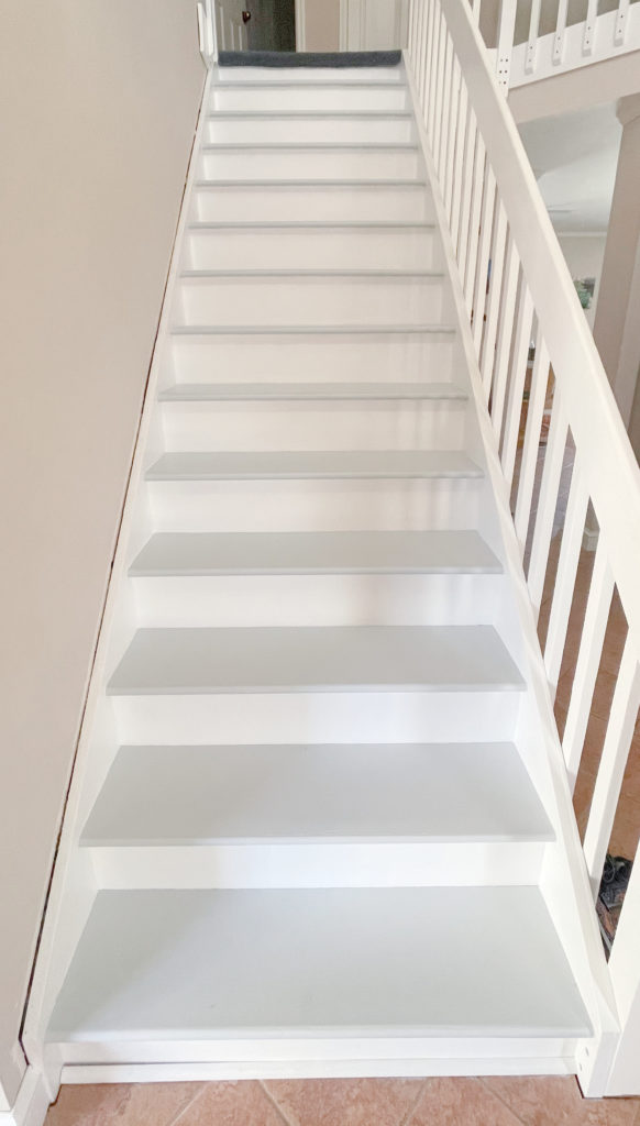 your staircase looks great. That’s a wonderful shade of whitish grey, my favorite in fact.