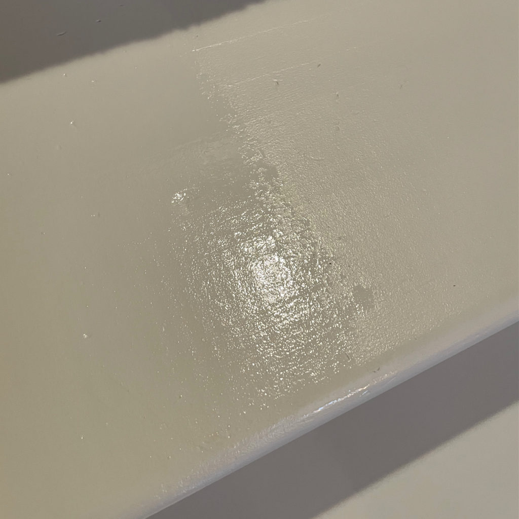 I did have some moments of panic here as well. The topcoat goes on quite shiny, and my fear was shiny, slippery stairs. It even felt a little slick to the touch before it had completely dried. We live the Northeast, so cold winters mean wool socks, and this is not the kind of thing you want to risk falling down the stairs.