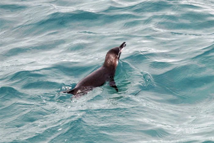 In the afternoon, we swam off the beach around Pinnacle Rock. Sea lions greeted us as we arrived at the beach in our pangas, and all afternoon, a large male played with the visitors. There were penguins in the water around the point.