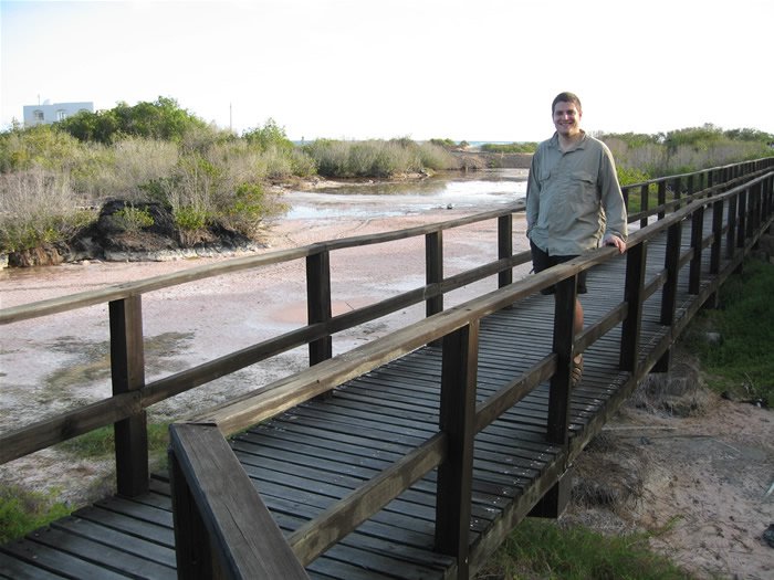 Our boat took us to Punta Cormorant – despite the name, there are no cormorants here. We took a nature walk across the island to a beach, famous for nesting sea turtles. The beach was very picturesque, and there were a lot of tourists here. About halfway through the trail, there is a large salt pond where several flamingoes reside.