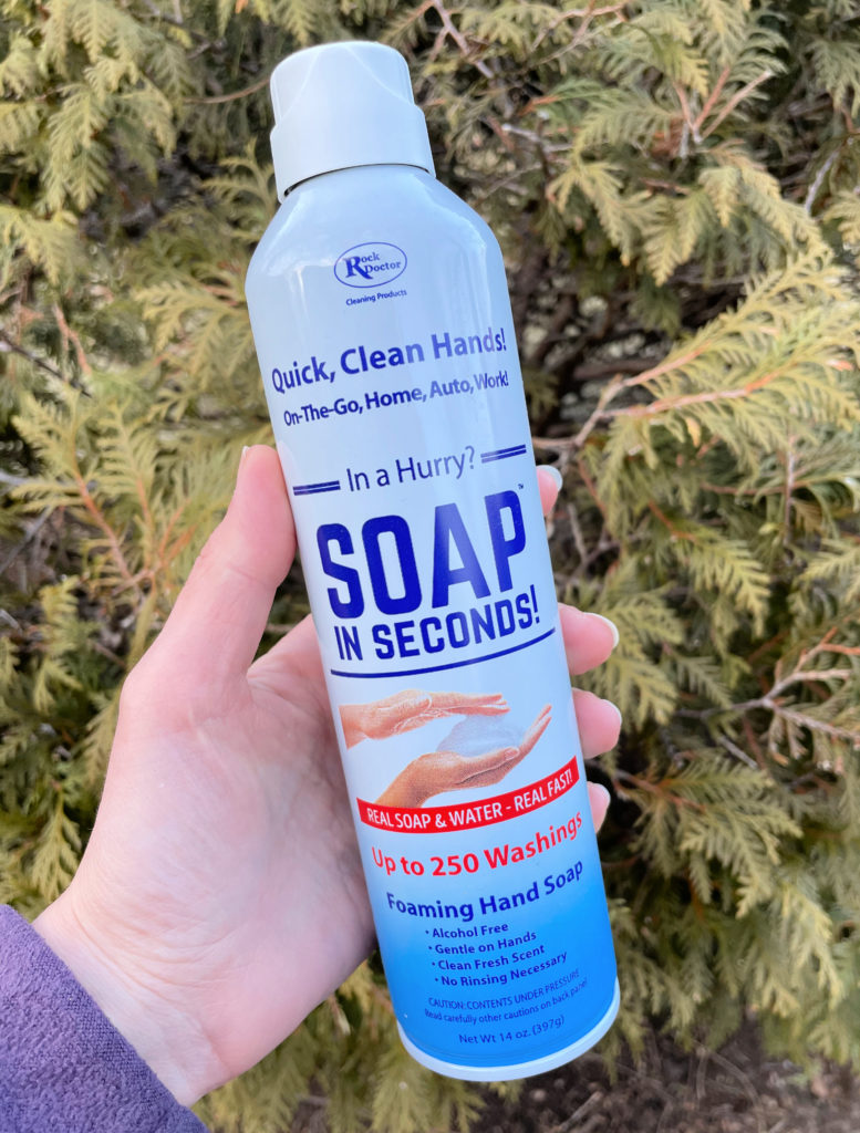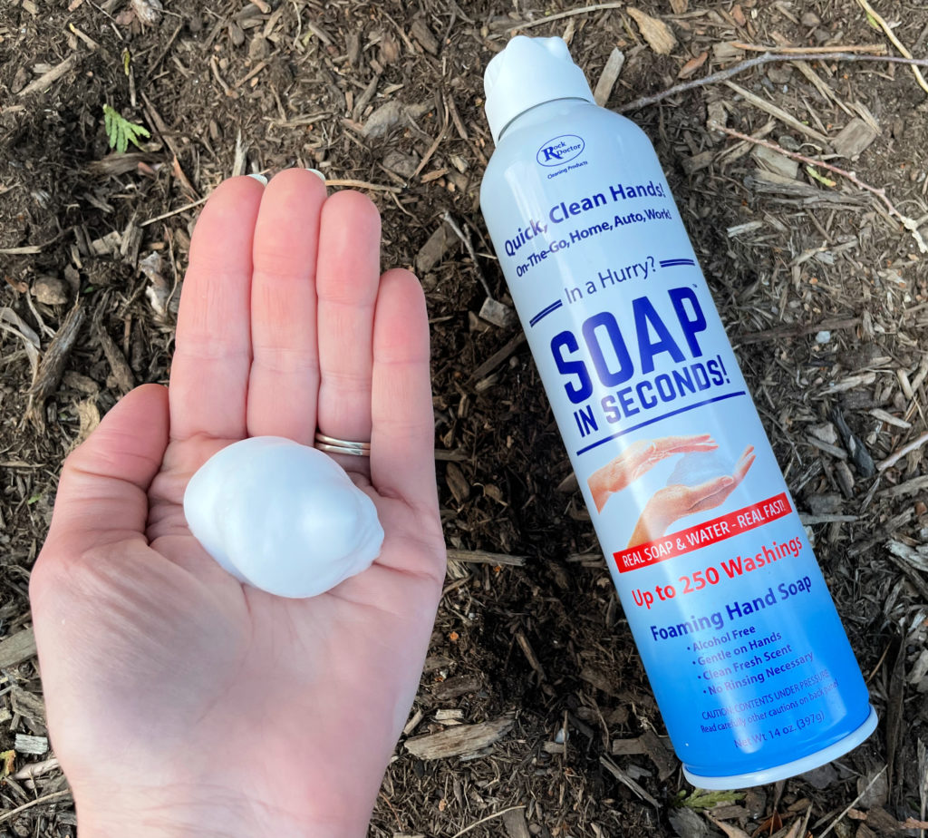 I had never heard of soap on the go until I learned about Soap in Seconds. This soap comes with everything you need in a can, and acts like regular soap, but without the water.