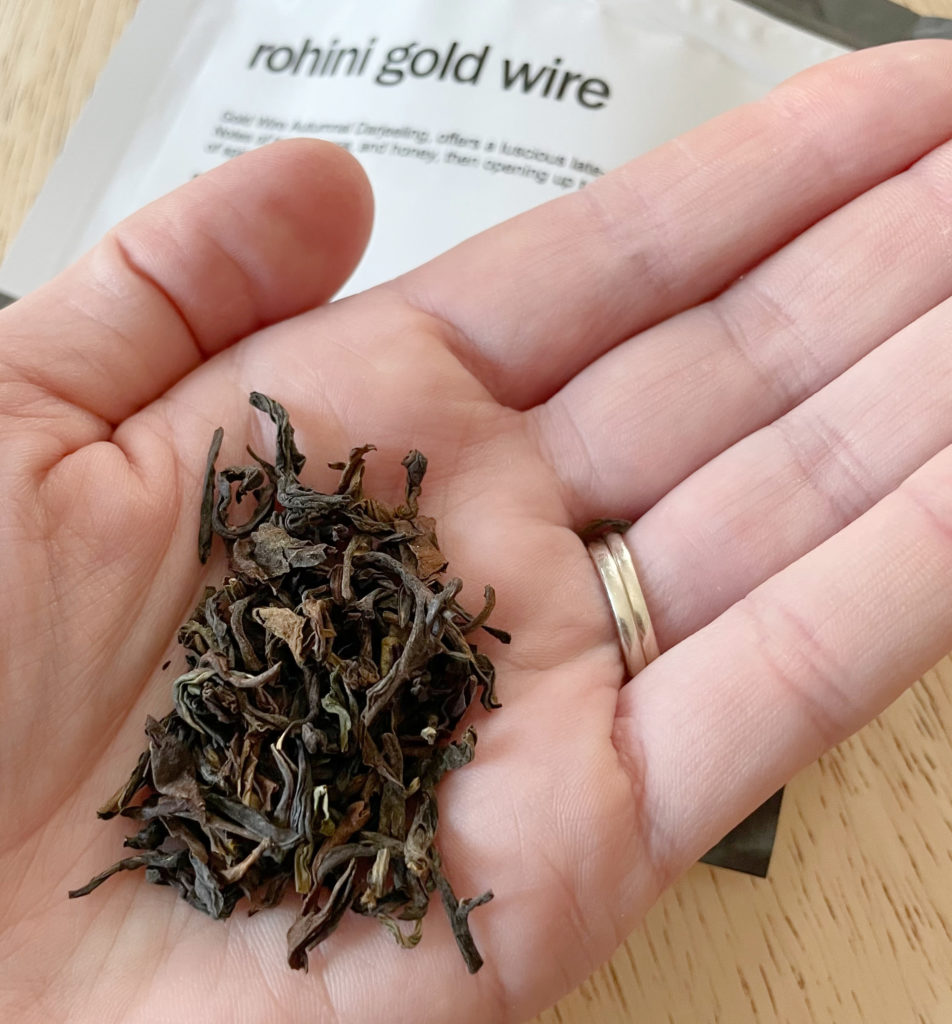 This Rohini First Flush tea has a beautiful flavor, with a lot of fruity and floral notes in it. Overall, it is a very light, subtle fragrant flavor. The website describes it as “aromatic, with fruity notes of pear and a lingering lily-of-the-valley and pear blossom finish“.