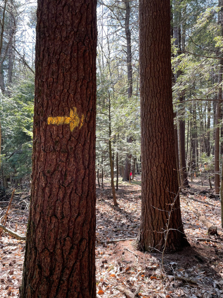 There are also arrows painted on many trees throughout, corresponding to the trail color.
