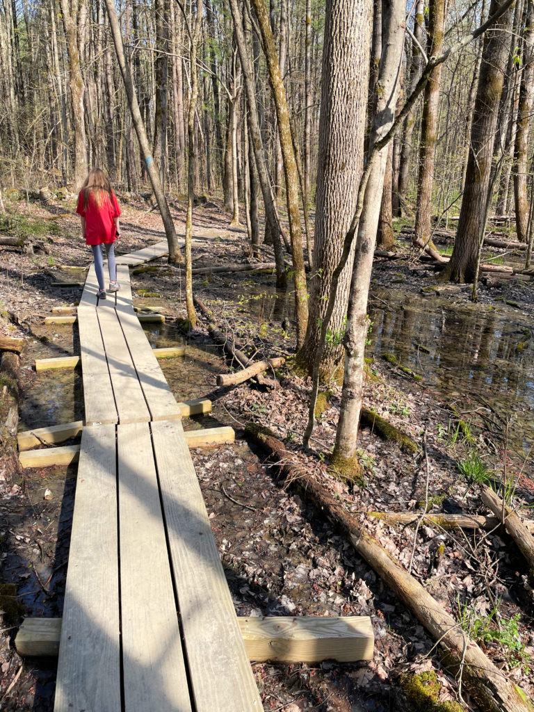 There are several bridges and boardwalks over water and muddy areas, so despite spring rain, mud was not much of an issue.