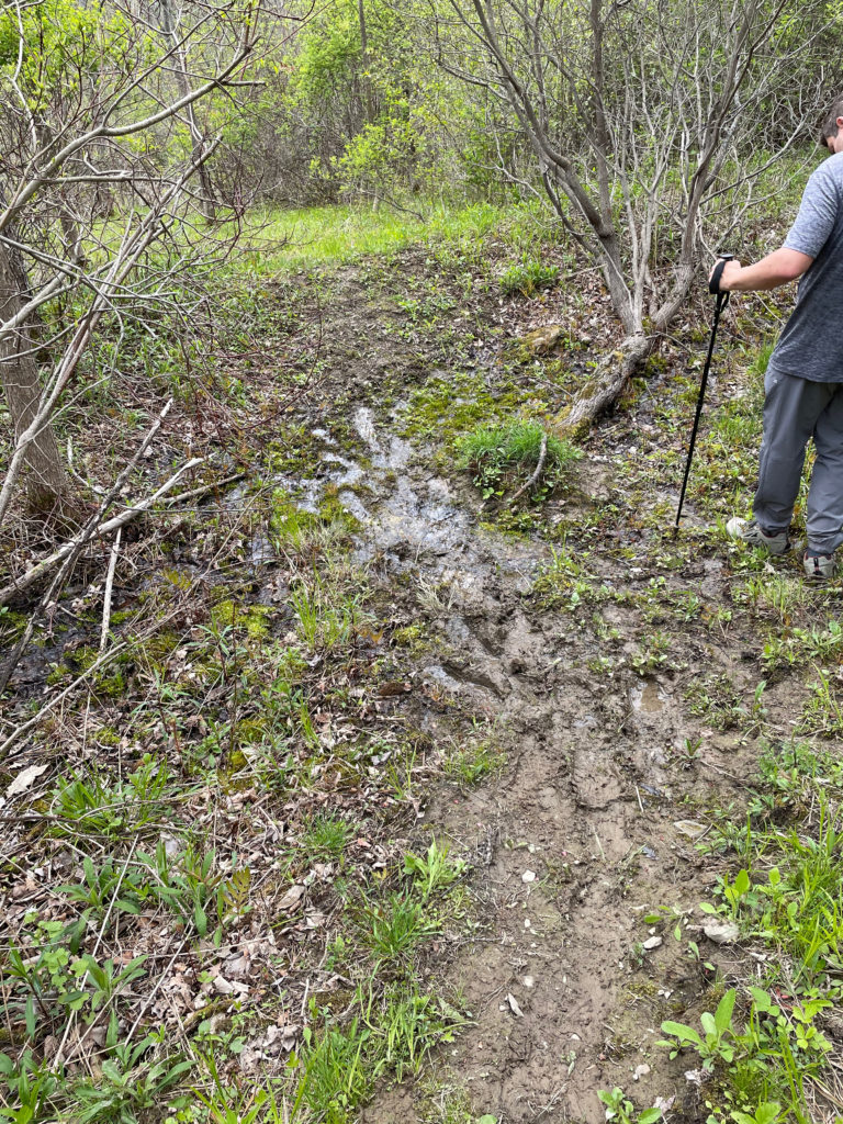The majority of the trail was mud, and I found myself either sinking in mud or struggling not to bushwhack, as I try to avoid brush and ticks, and don’t want to widen the trail around the mud.