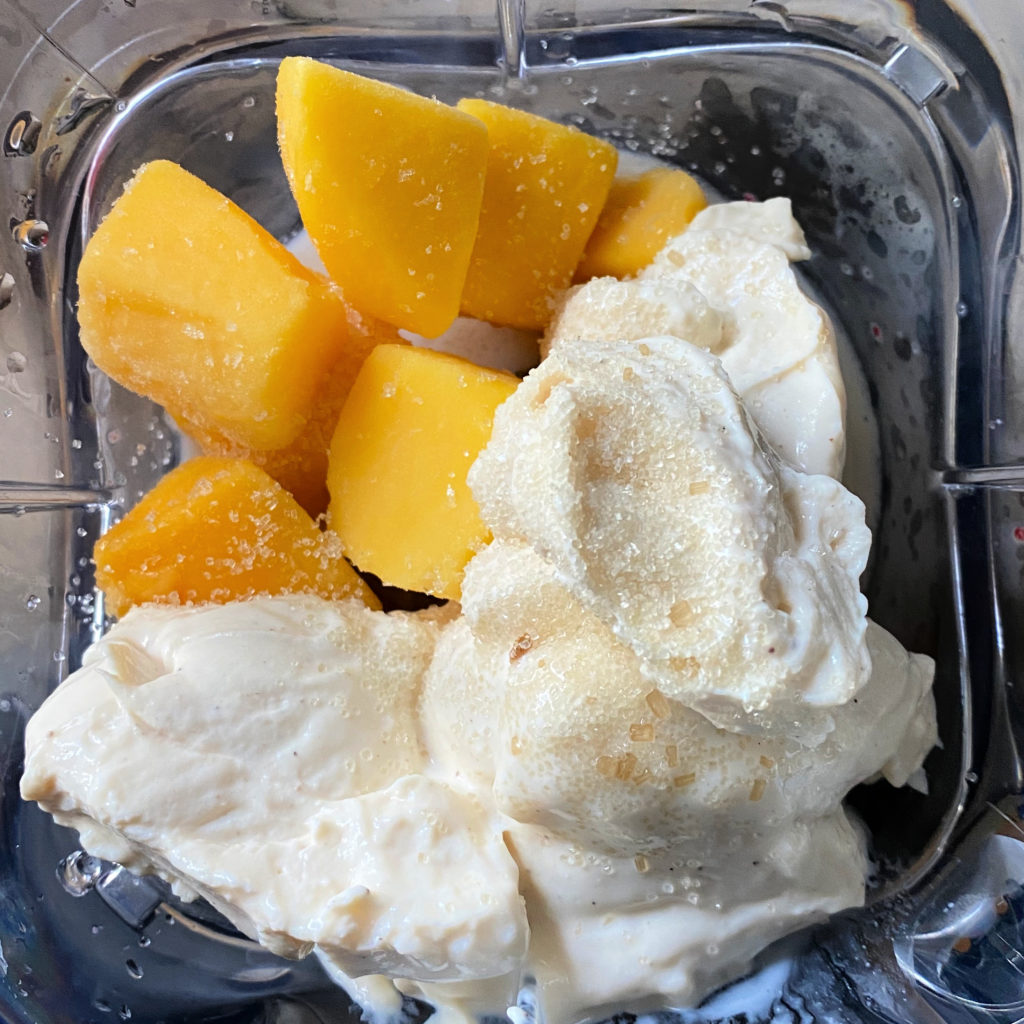 - optional: a few ice cubes if you are using fresh mango (versus frozen) or want to make this a colder drink