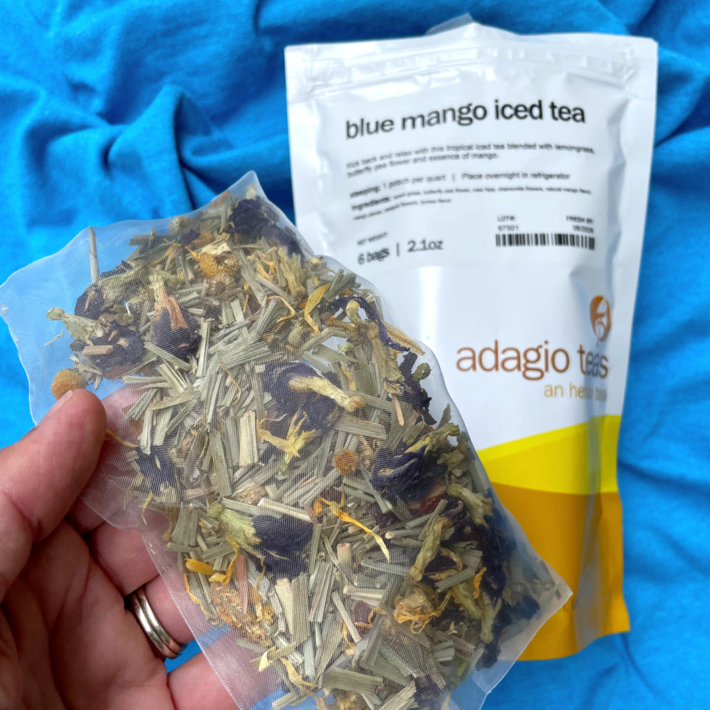 And Adagio Tea’s blue mango iced tea is wonderful as well – the perfect refreshing summer iced tea! I love serving this as I always get compliments on the color and flavor. We love this tropical, fruity tea, including the kids.