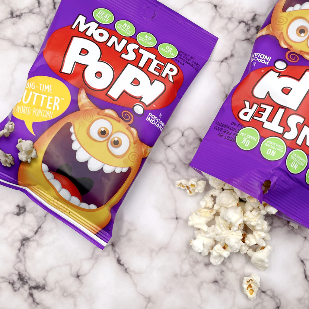 There are several flavors of Monster Pop!, including Butter, Cheese, Kettle Corn, and Pizza, and you can find full size bags and snack size bags. The full-size bags are perfect for things like our family movie nights!