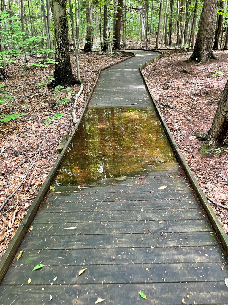 The boardwalk was all in pretty good condition, except for a handful of broken boards and this spot that was collecting water. I thought that it was in pretty good shape for almost a mile of boardwalk. The signs warn that the boardwalk can be slippery when wet.