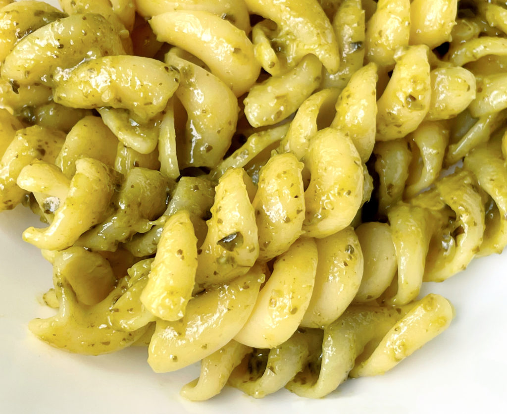 My kids my godmother takes pasta, pesto sauce, lightly steamed broccoli and tosses it all with Parmesan.