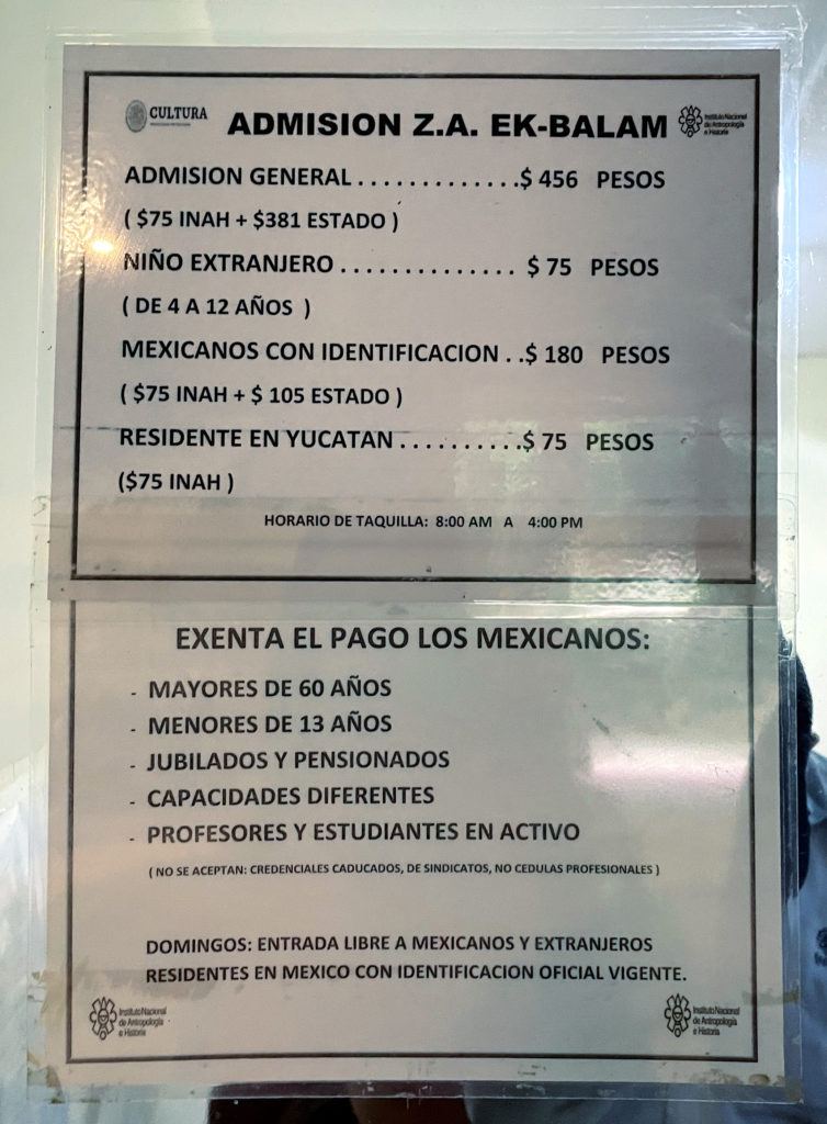 The prices were posted at the ticket counter. We visited in July 2021, so these were the prices. We also hired a guide, which we have done at other Mayan Ruins like Coba. Our guide spoke wonderful English and had a binder of photos to use as a slideshow. I definitely recommend hiring a guide, but if not, there are maps posted around the property as well.