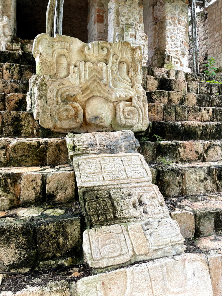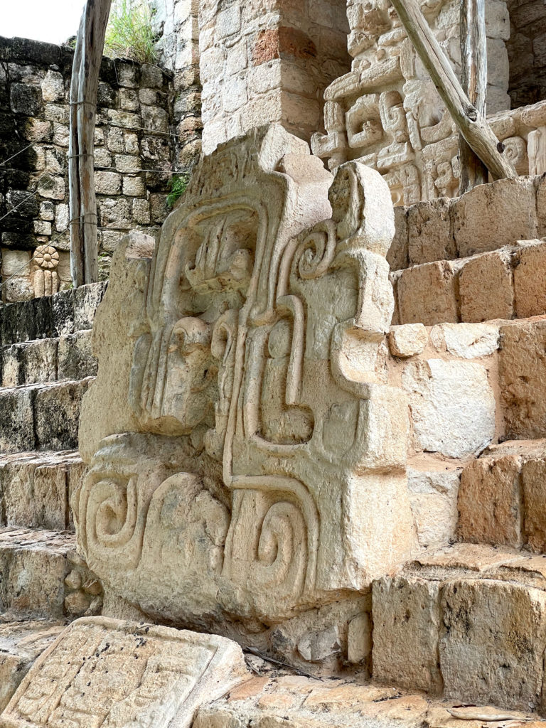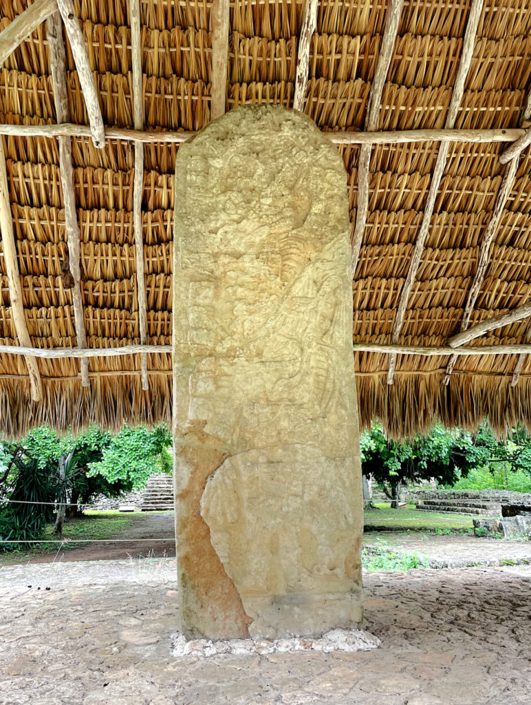 There are various stelae around the property. This one is thought to depict one of the rulers of Ek Balam, possibly Ukit Kan Leʼk Tokʼ (according to Wikipedia).