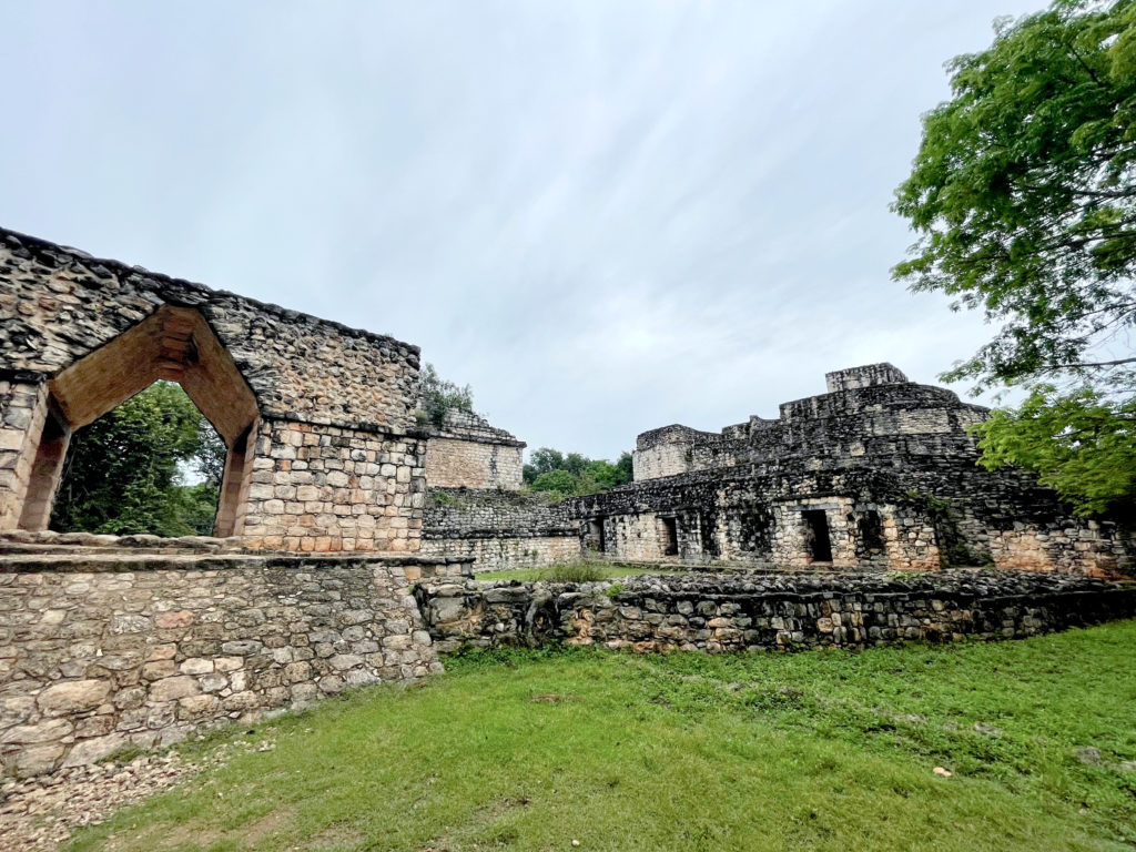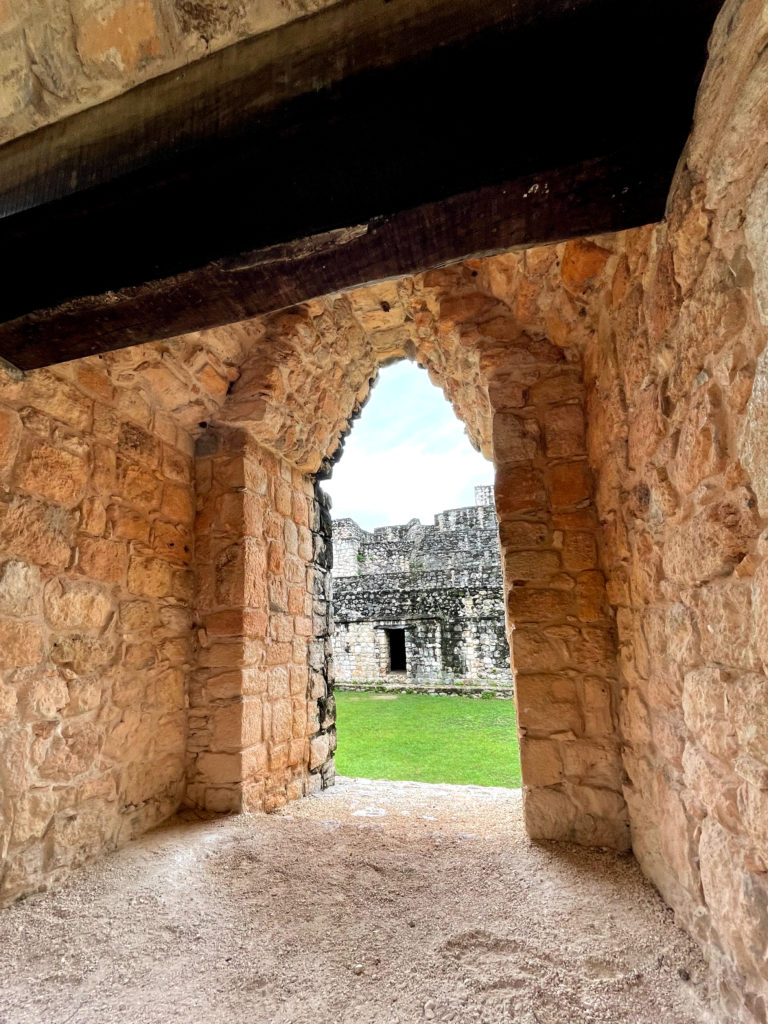 These were the first buildings that we saw, built along the walls that surround Ek Balam. To the right in the photo is the Oval Palace.